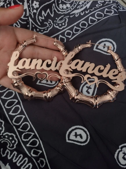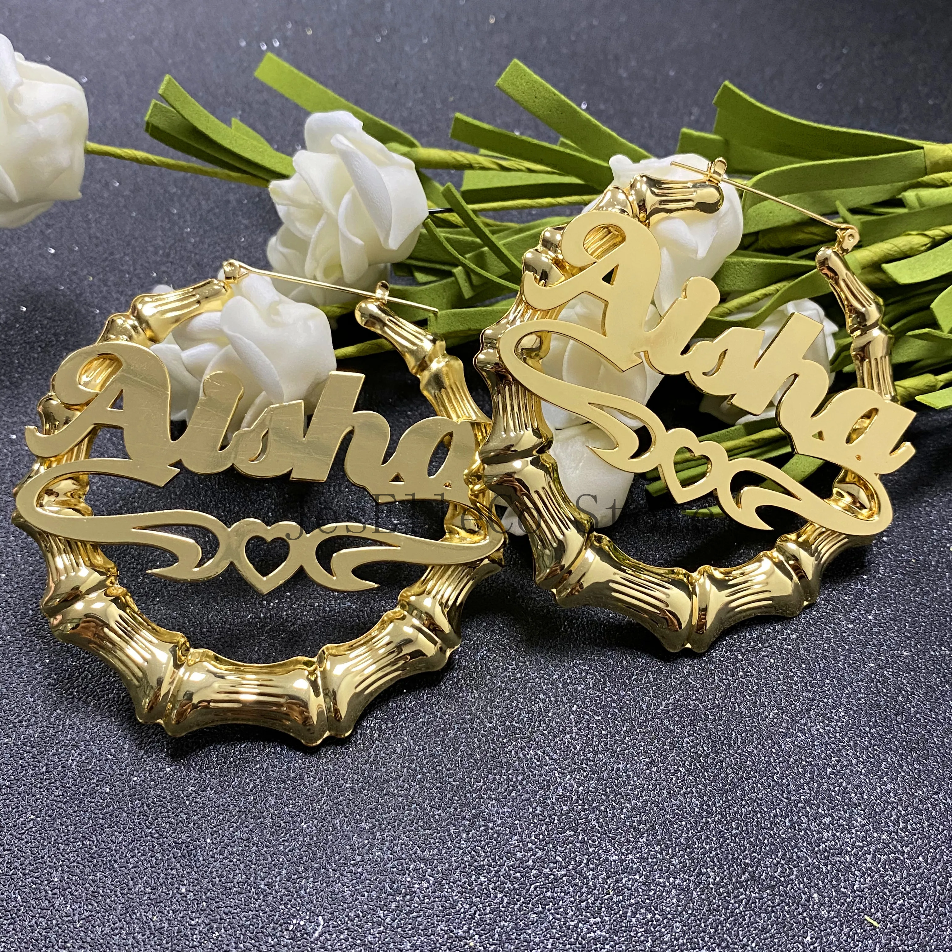 Бамбук Серьги-кольца настраиваемые серьги с именем на заказ в виде ...