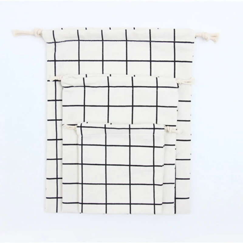 Хлопковый льняной мешок с кулиской с принтом, клетчатая сумка для у...