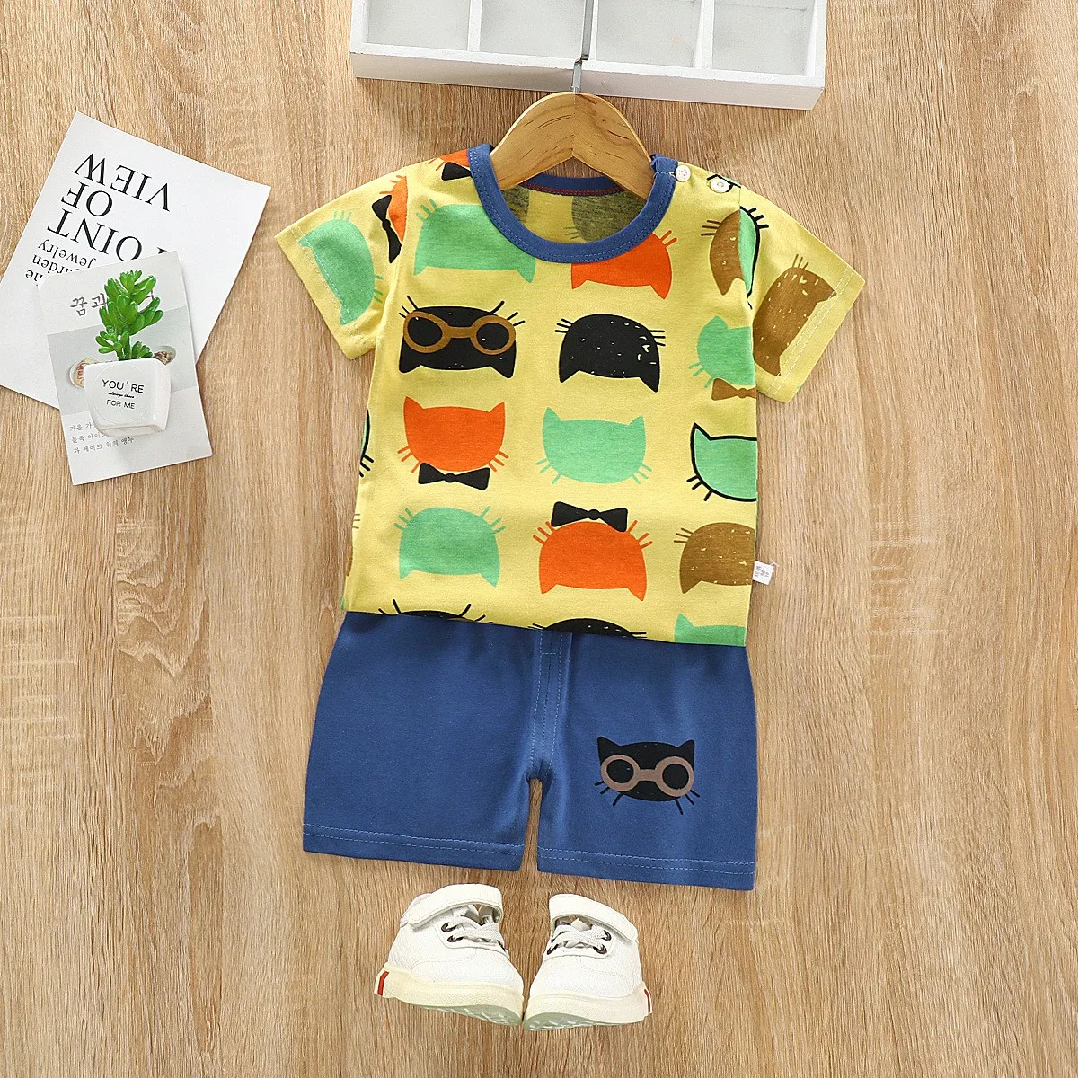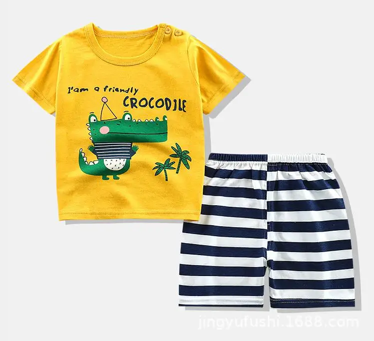 Летняя одежда для маленьких мальчиков Комплекты одежды для детей футболка + штаны для маленьких мальчиков футболка с короткими рукавами одежда для маленьких девочек