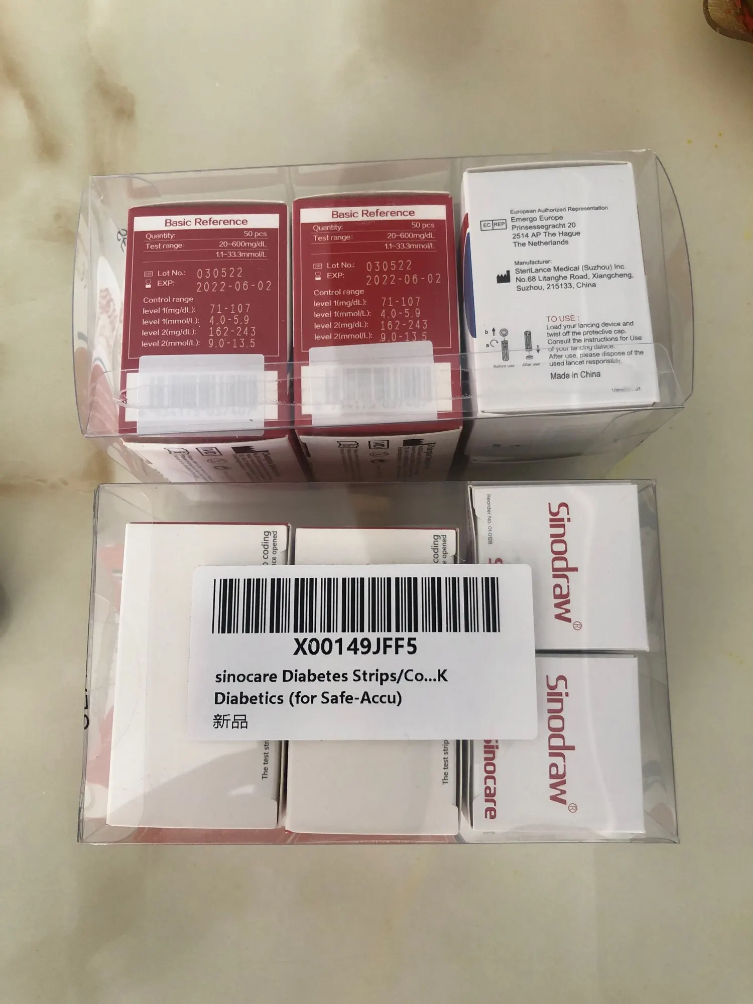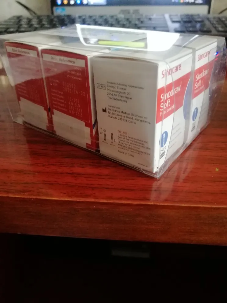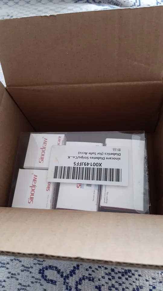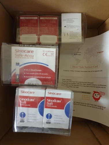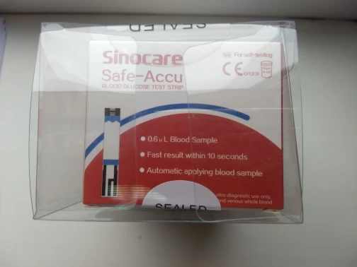 всё отлично! доставка быстрая, упаковка - картонная коробка, внутри еще пластиковая коробка а в ней уже ланцеты и тест полоски и снова к коробочках. приложена инструкция на английском языке.