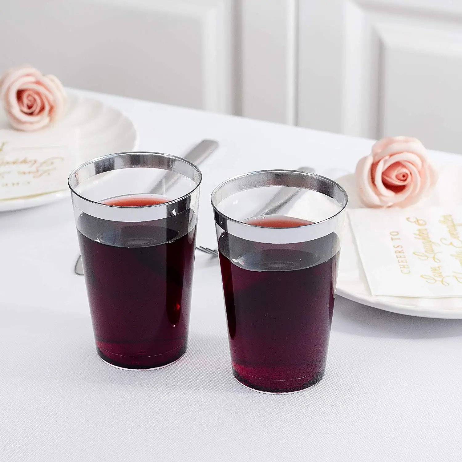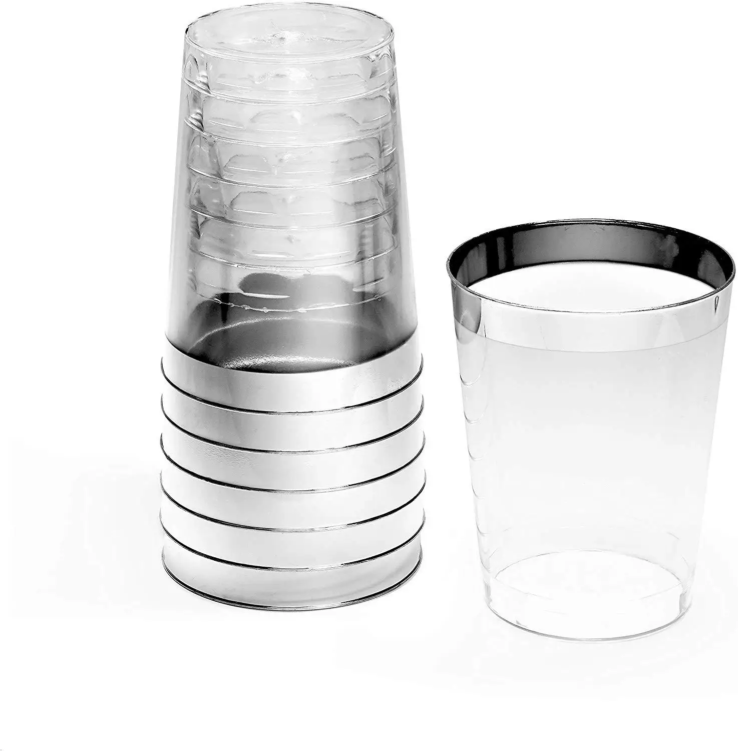 Стаканчики пластиковые серебристые, 10 унций, элегантные одноразовые стаканчики для свадебвечерние, 25 шт.