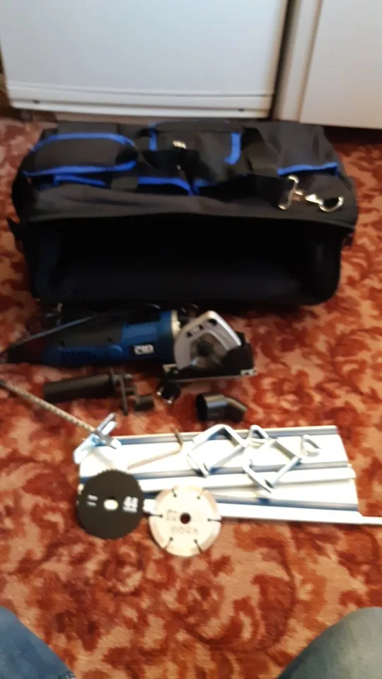 Доставка более чем доволен: в МСК через день на дом через IML. Курьер за час - отзвонился. Брал в максимальной комплектации . Кнопка включения без фиксации. Диски: диаметр наружный 85мм, внутренний - 15мм. Алмазные, по дереву и с победитом. Направляющие по 35 см, соединяются между собой через внутренние вставки. От края платформы до диска ~ 18мм (это на тот случай, если вплотную к стене что-то отрезать придется) . В деле еще не пробовал, надеюсь что послужит долго.