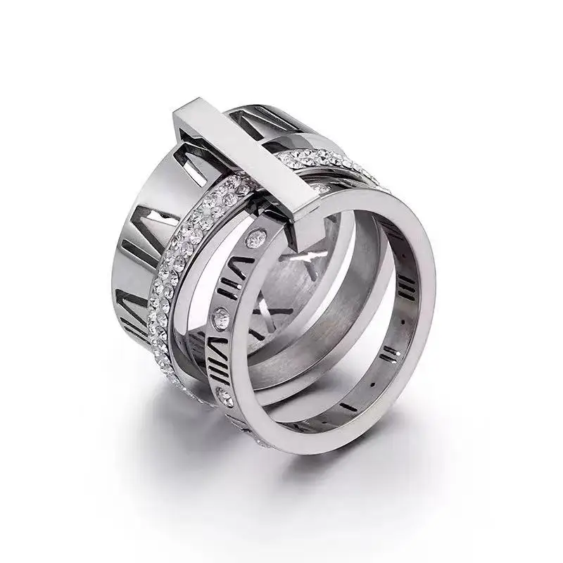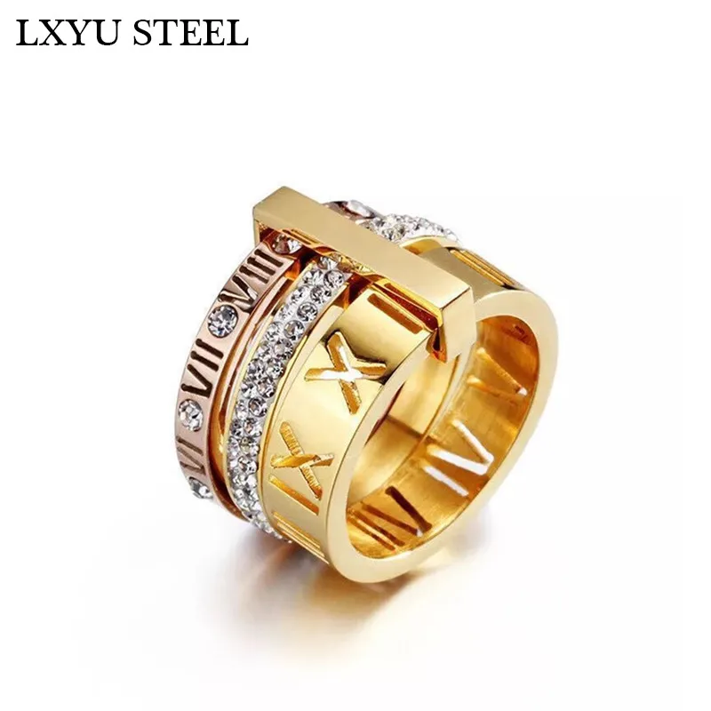Роскошные Стразы, кольца для женщин, нержавеющая сталь, Золотой/Серебряный цвет, римские цифры, кольца на палец, женские свадебные помолвки