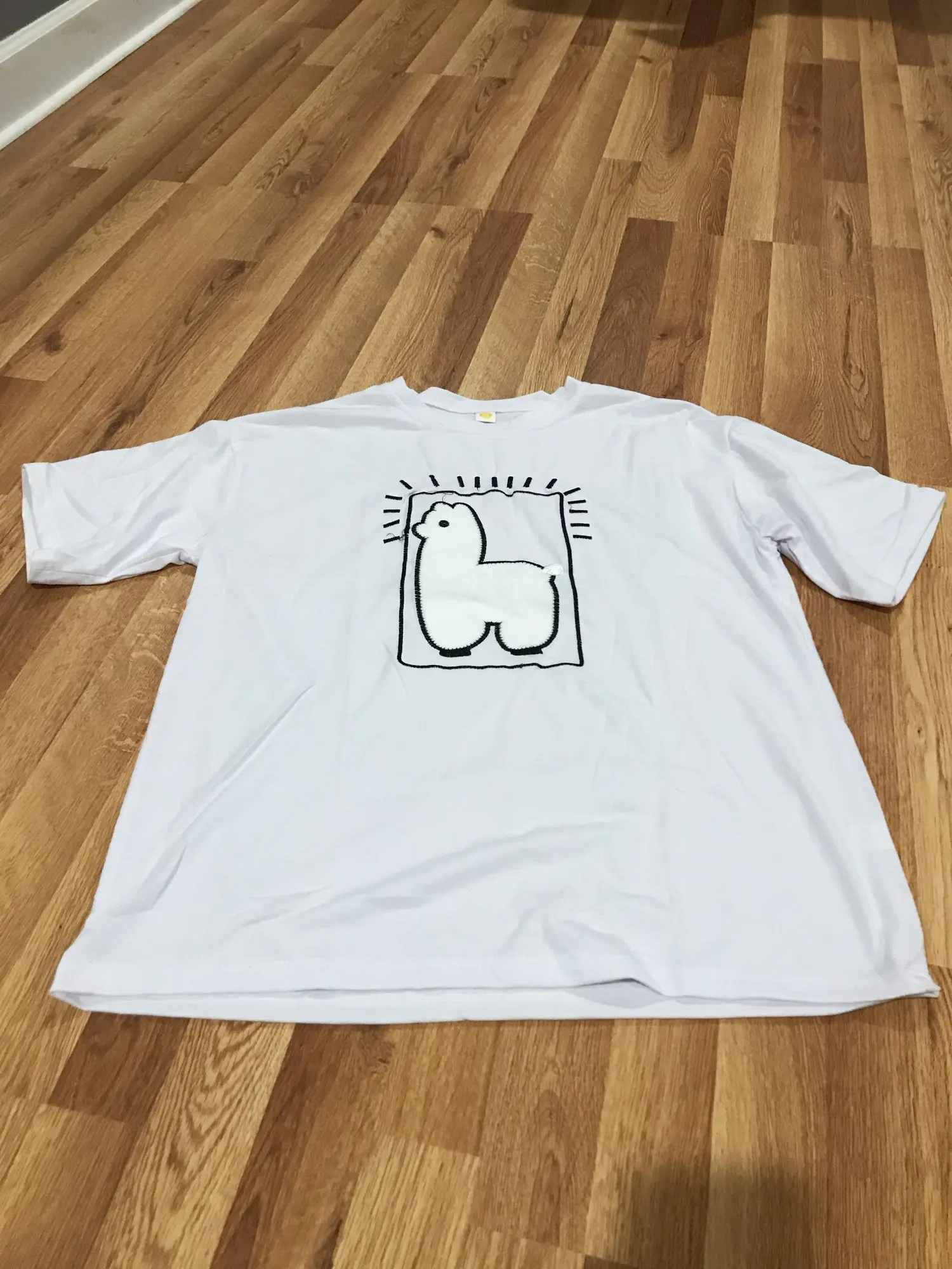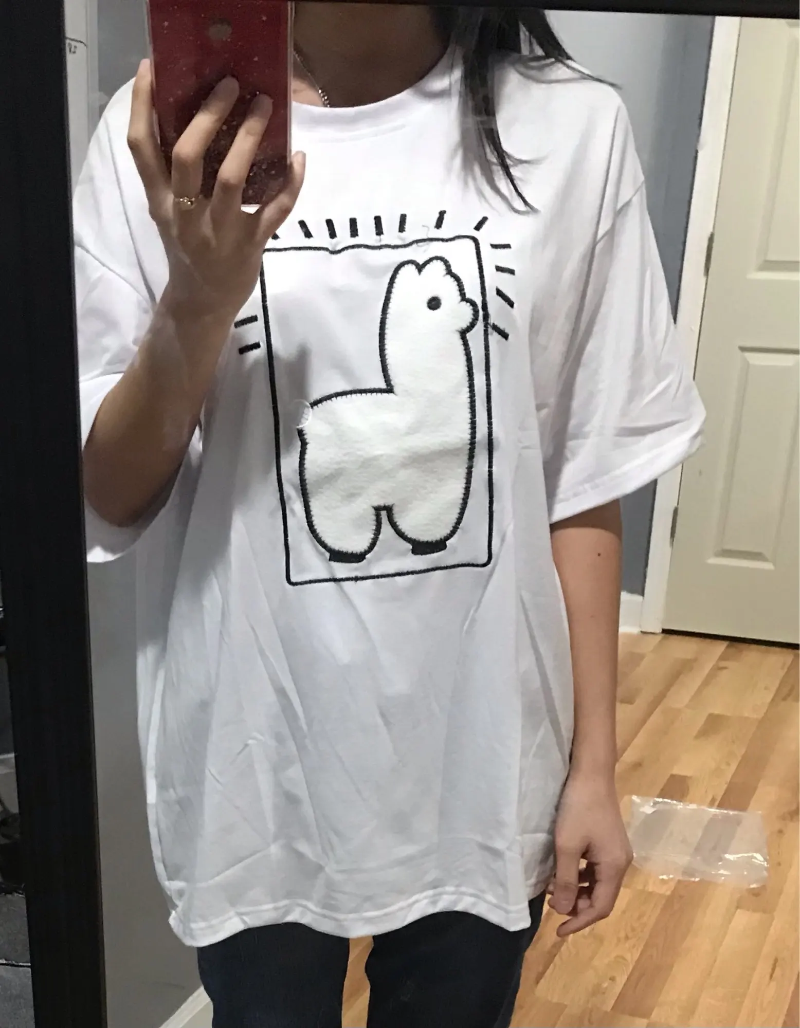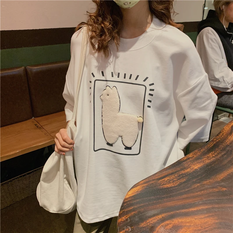 Женская футболка с коротким рукавом, Повседневная Свободная футболка большого размера с мультипликационным принтом альпака в Корейском стиле, лето 2020