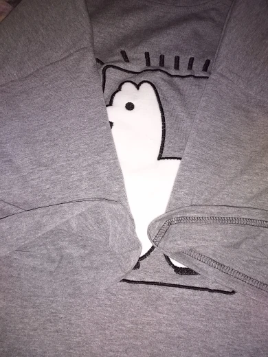 В аппликации торчит пару ниток, которые легко отстричь. Выглядит превосходно! Классная футболка
