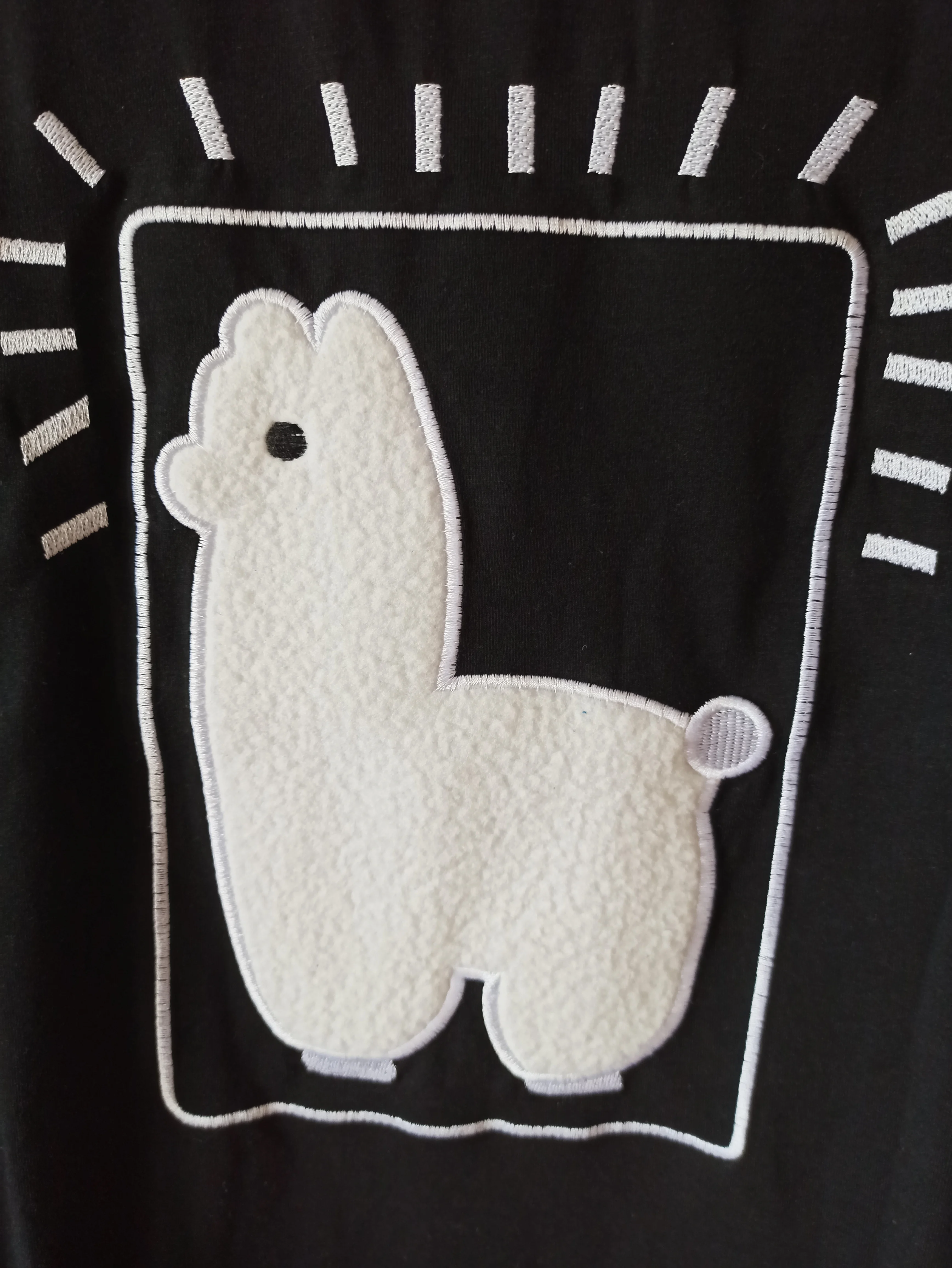 Очень хорошая футболочка. Прищла довольно быстро.Оссобеннл прикольная лама. Ткань хлопковая, приятная к телу. Очень хорошо смотрятся черный с белым.Советую.