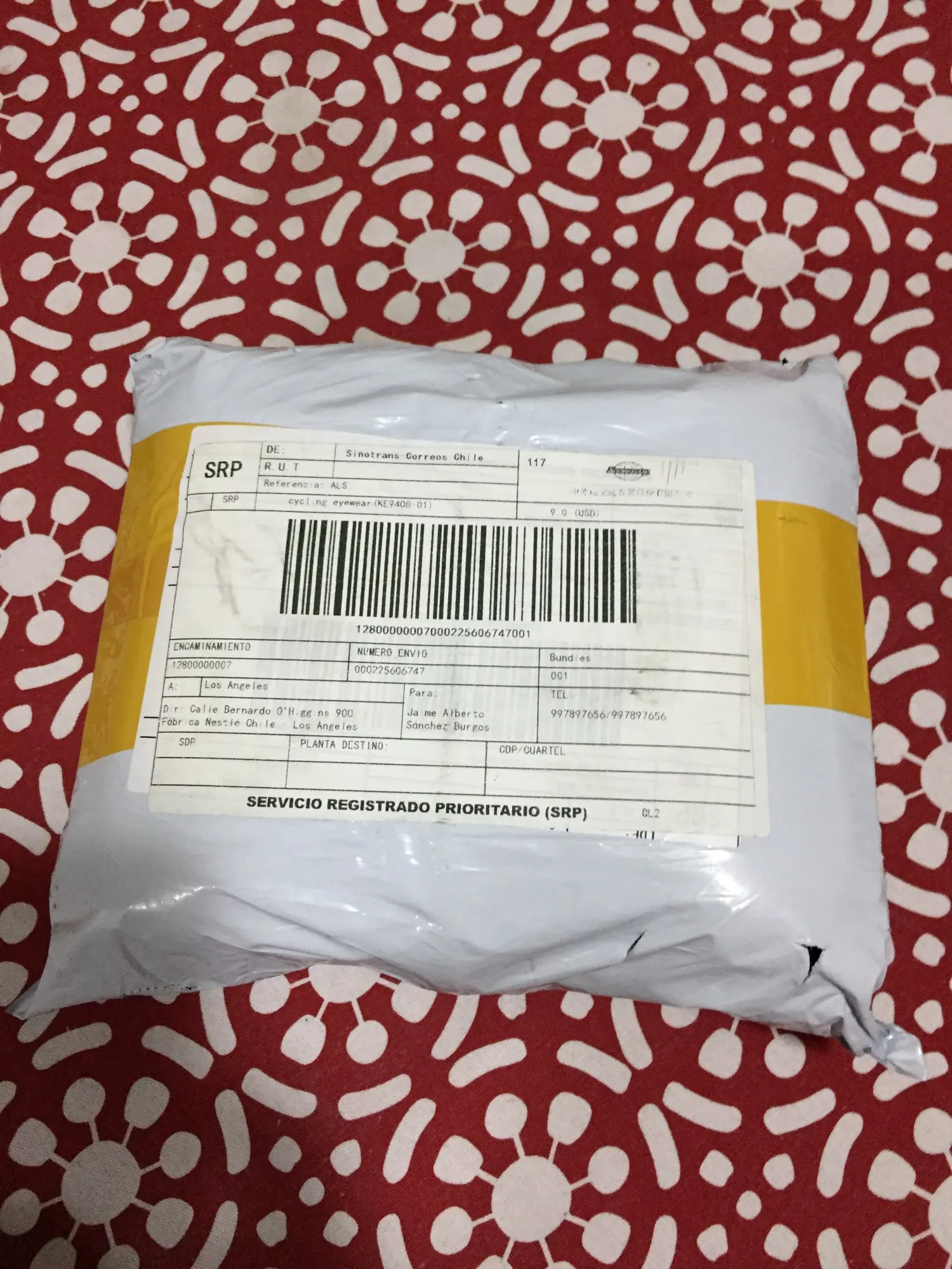 Как на фотографии. Он прибыл в Чили через 3 недели, очень быстро. Я рекомендую его!