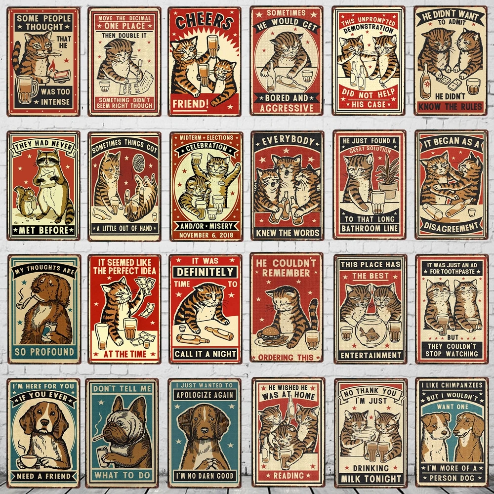 Металлическая выпивающая жестяная доска с кошачьими правилами, винт...