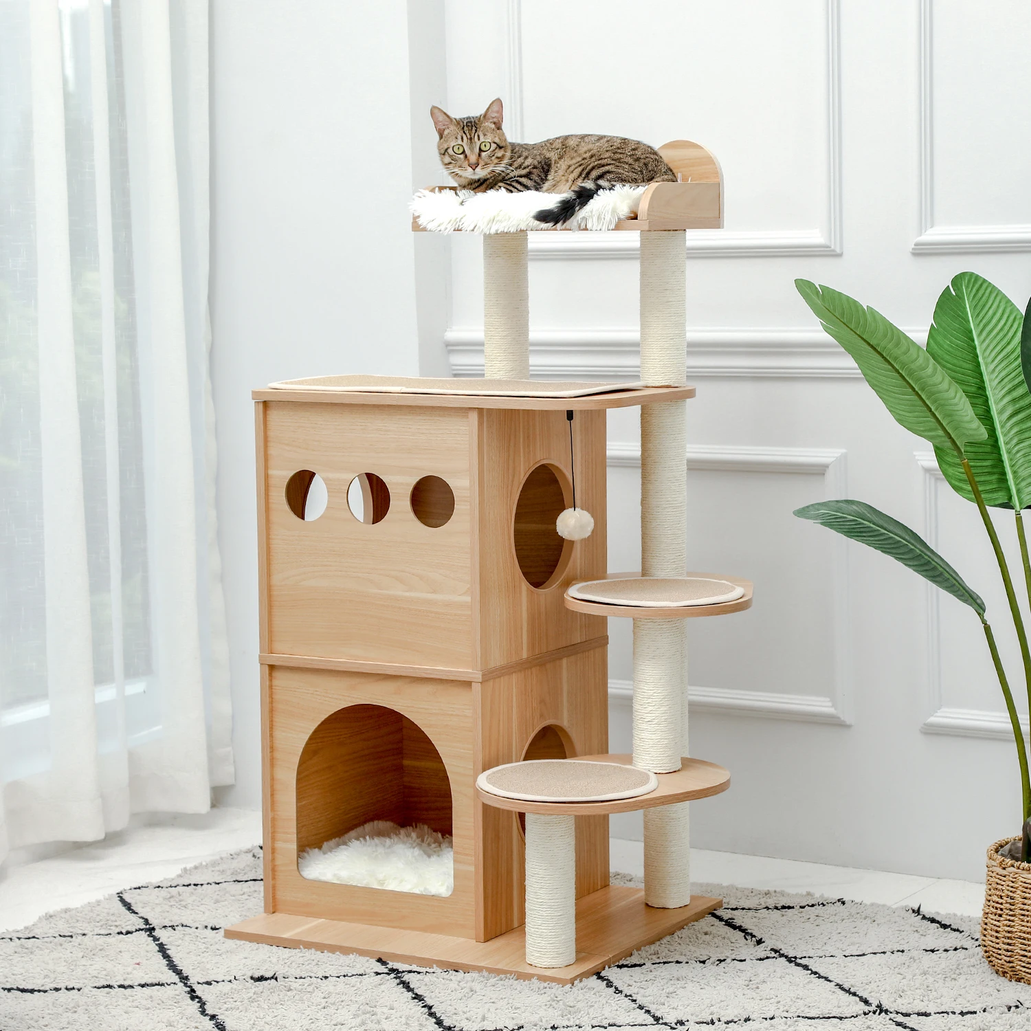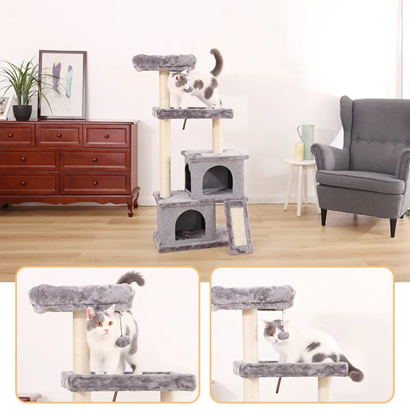 Прочный и безопасный: Стабильность всегда является приоритетом. Нижняя часть усилена, что обеспечивает стабильность всего кошачьего дерева