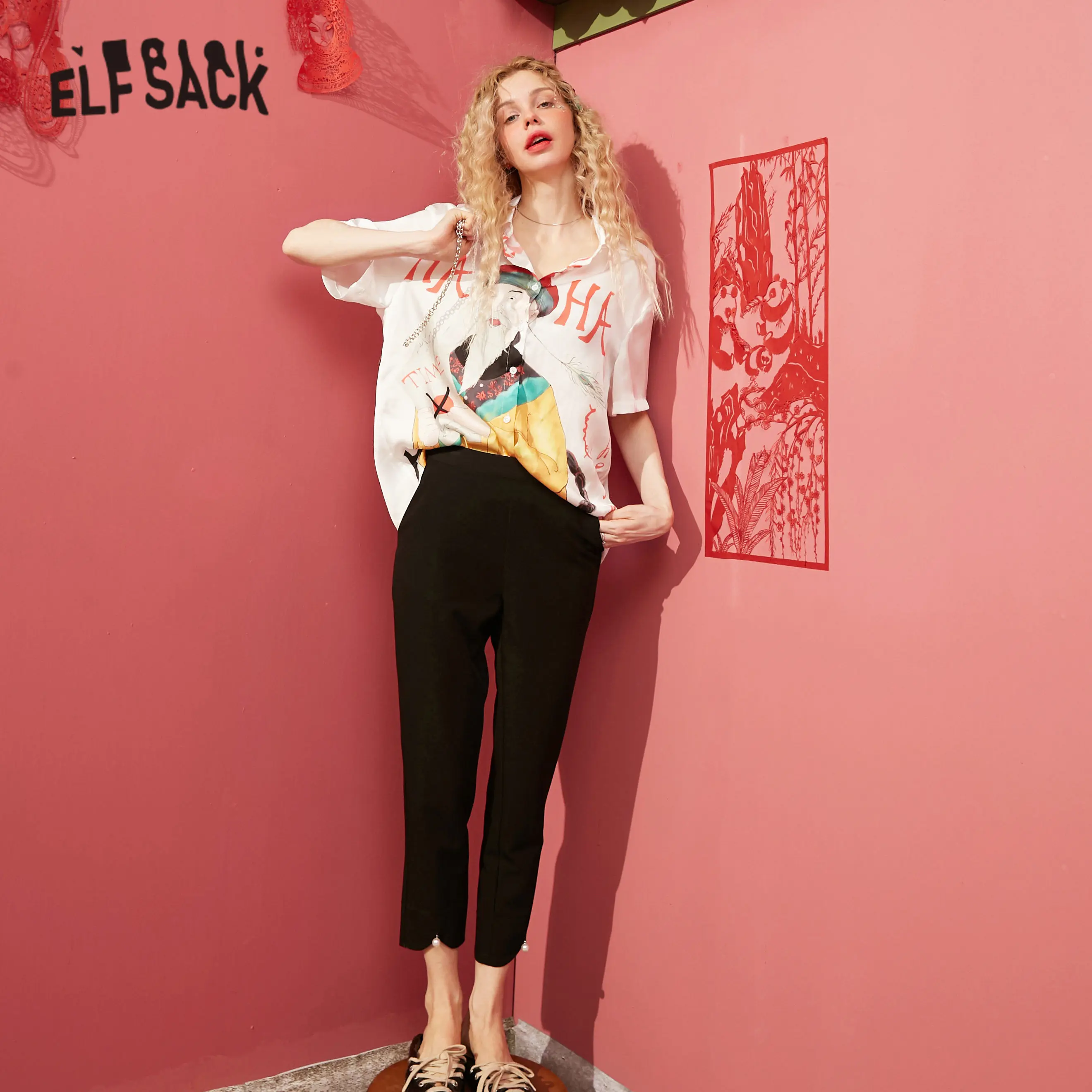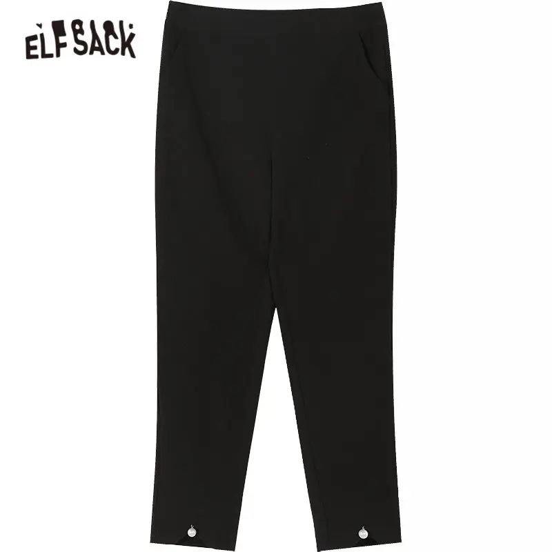 Женские обтягивающие штаны ELFSACK, черные однотонные штаны с жемчужинами и бисером, с эластичным поясом, весна 2020, повседневные штаны для ежедневной носки