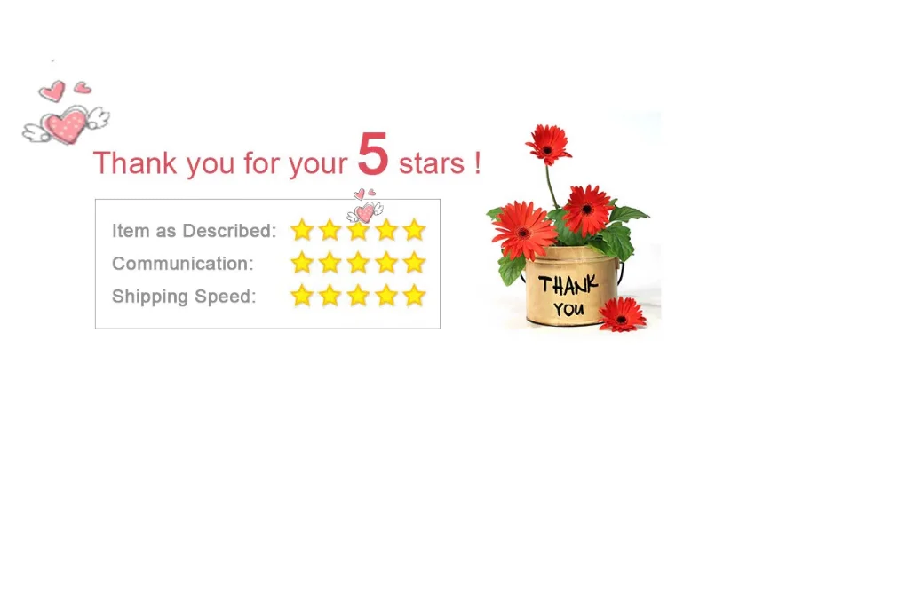 О отзывыЗдравствуйте, мой дорогой ~ мы рассматриваем клиентов как наших друзей. Мы надеемся, что вы сможете покупать у нас больше счастья и меньше беспокоиться. Ваша поддержка очень важен для нас, пожалуйста, не забудьте оставить нам 5-звездочный отзывы! Если у вас есть какие-либо проблемы, пожалуйста, свяжитесь с нами. Мы считаем, что проблема может быть решена хорошо после нашего общения ~ мы делаем все возможное для вас!