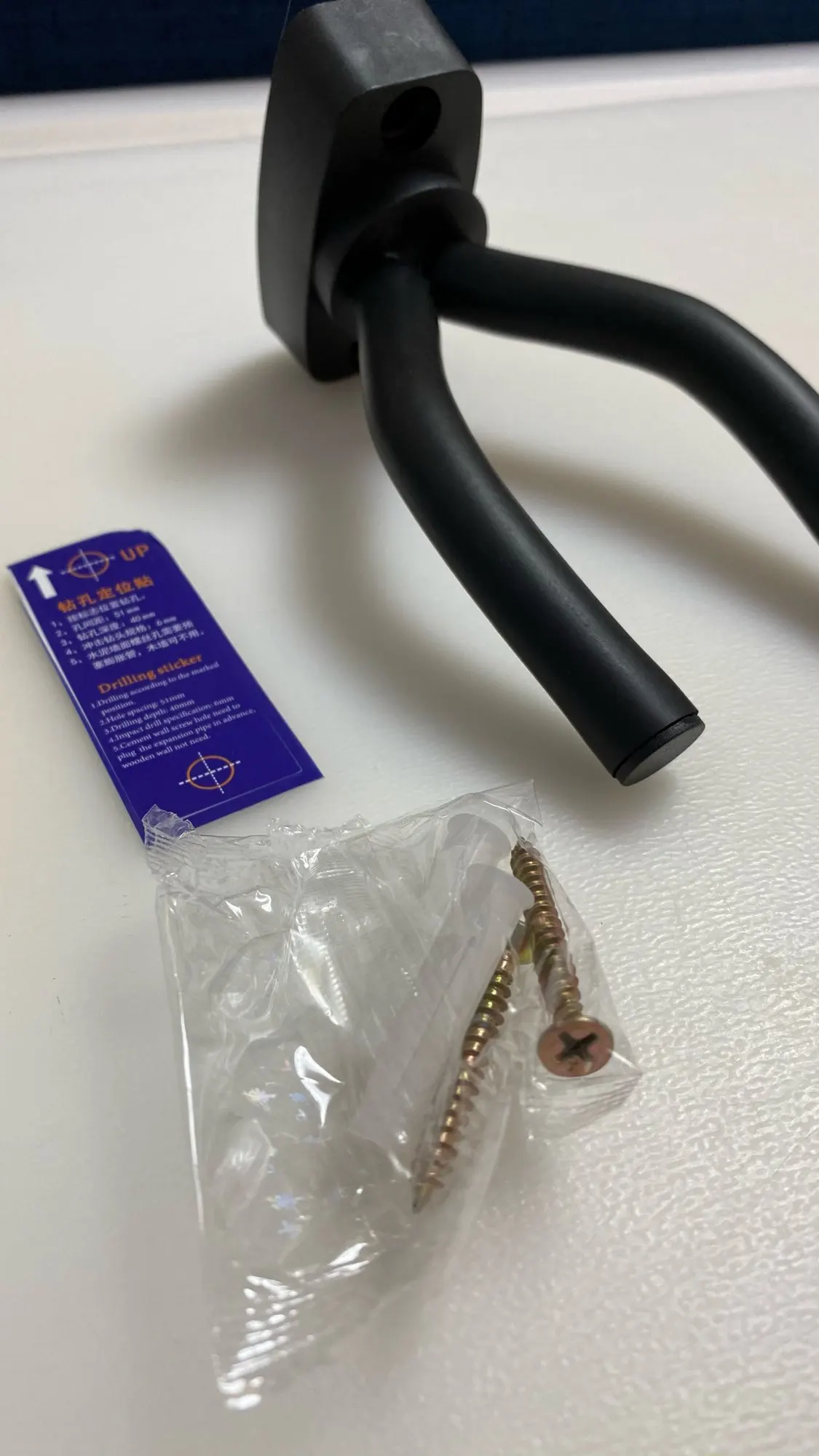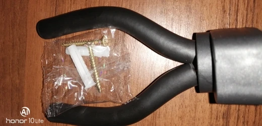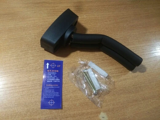 отличный товар, в комплекте саморезы с пластиковыми анкерами. очень удобная штука еще прилагается наклейка шаблон для сверления отверстий в стене под размер изделия. очень доволен, спасибо продавцу, можно заказывать.