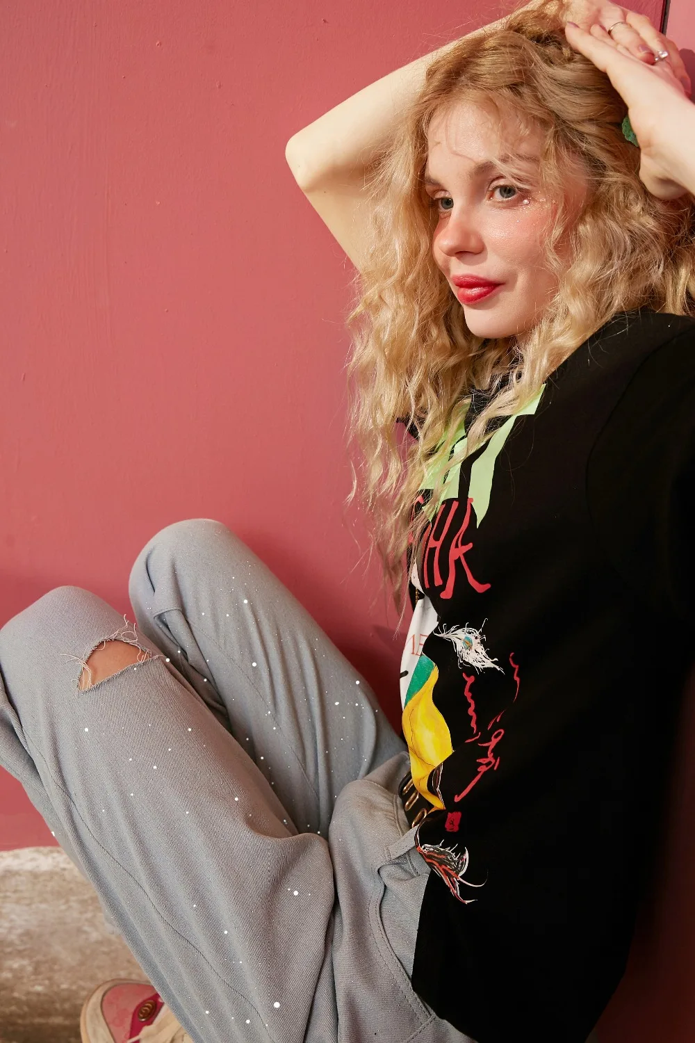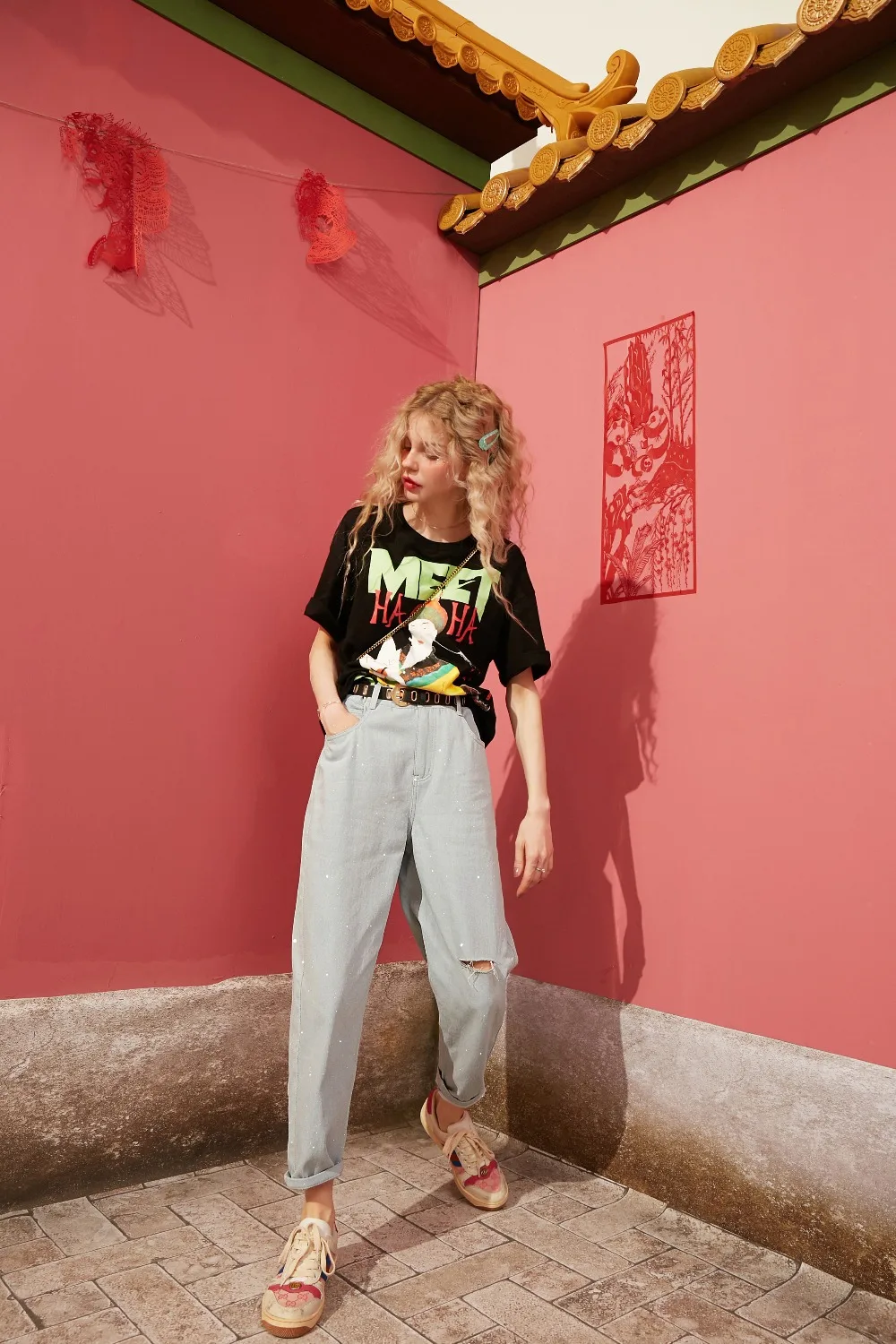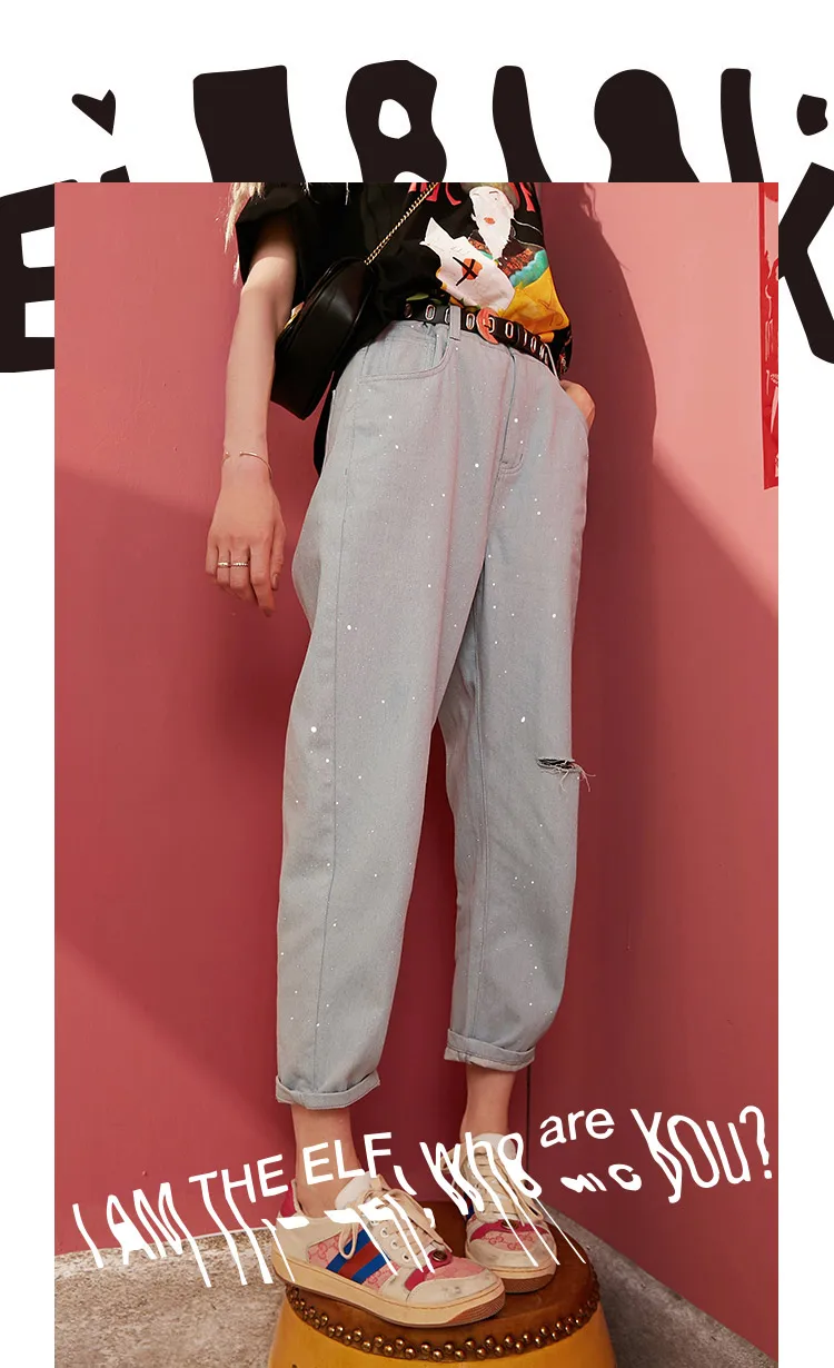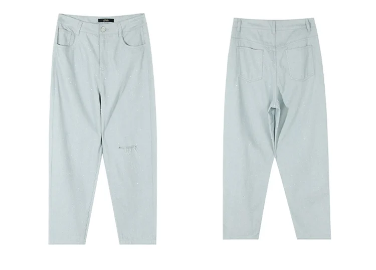 Женские прямые потертые джинсы ELFSACK, синие однотонные рваные джинсы с блестками, новинка весны 2020, яркие корейские дамские штаны для ежедневной носки