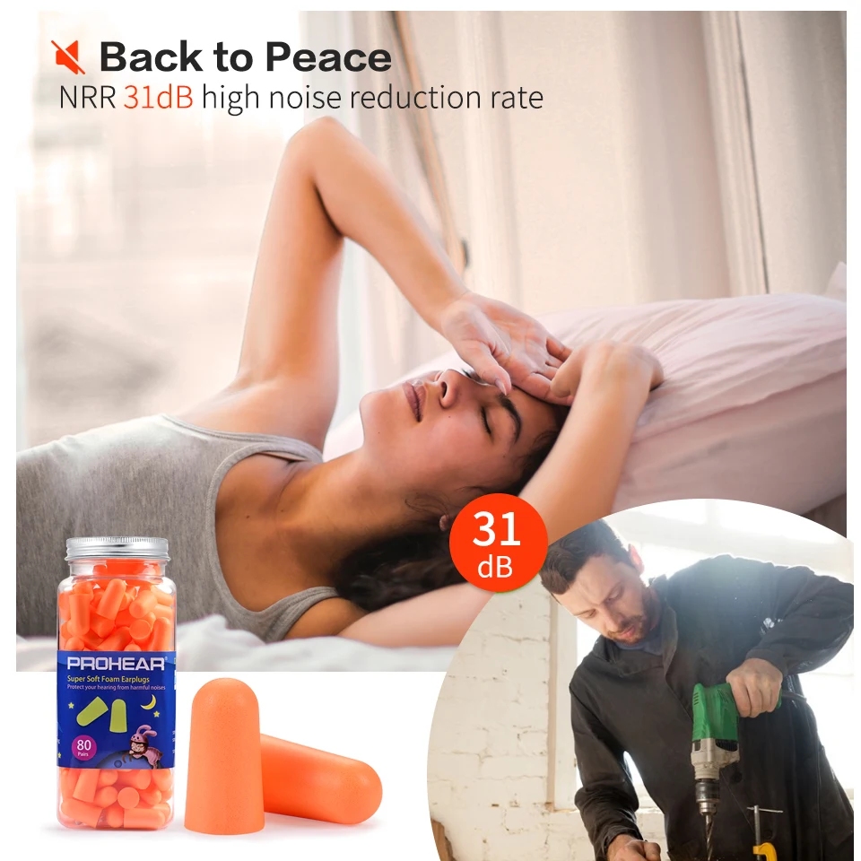 Беруши ZOHAN из пеноматериала, многоразовые, шумоподавляющие, с фильтром, звукоизоляционные, 80 пар, силиконовые беруши для сна, чехол для переноски