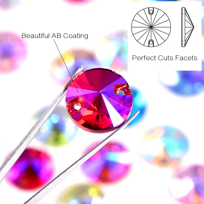 Круглые стеклянные стразы Rivoli, цветные стразы, пришивные стразы для одежды F0210