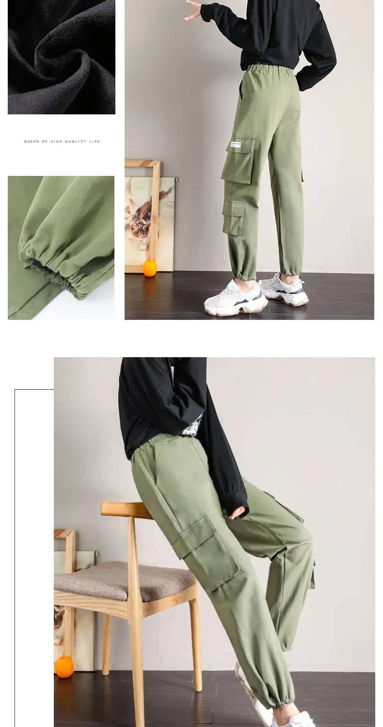 Брюки-карго в Корейском стиле Новые повседневные штаны с завышенной...