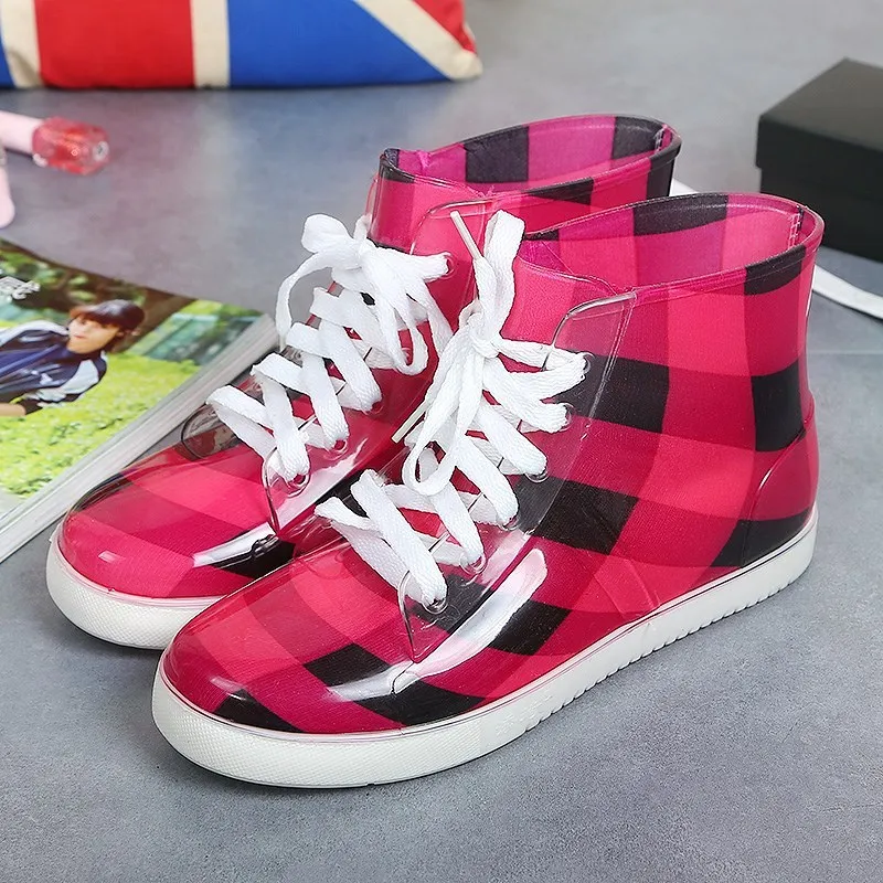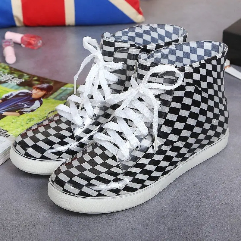 Модные женские резиновые сапоги на шнуровке Нескользящие резиновые ...