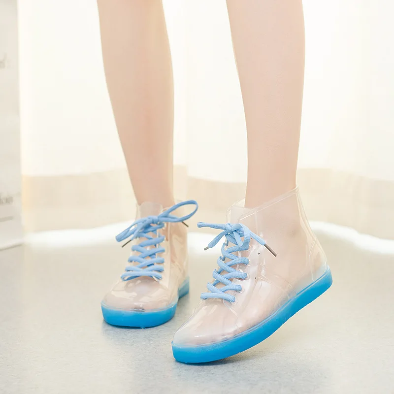 Прозрачные дождевые ботинки водонепроницаемая обувь, модные желейны...