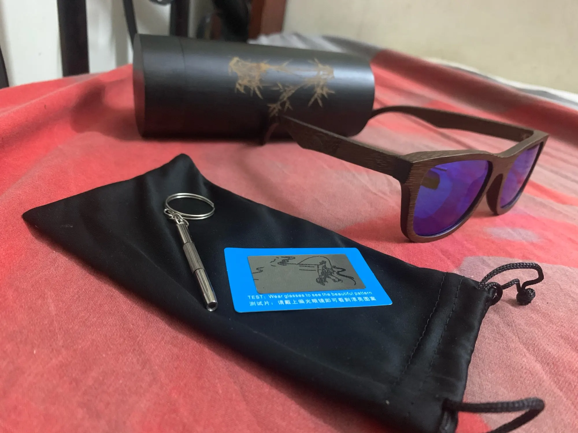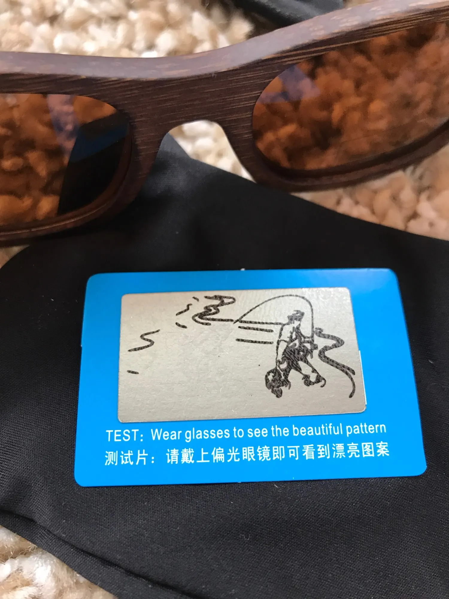 Окуляри просто вау! Все як на фото, навіть краще. Запаковано добре. В комплекті до окуляр йшов чохол бамбуковий та з тканини, викрутка для окуляр, індикатор поляризації, серветка. Однозначно рекомендую. Чоловік задоволений подарунком. Я буду собі замовляти жіночі.