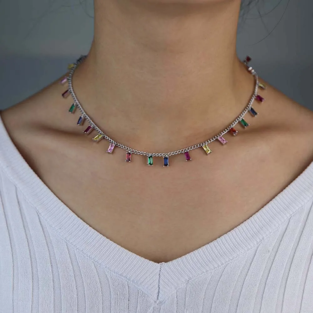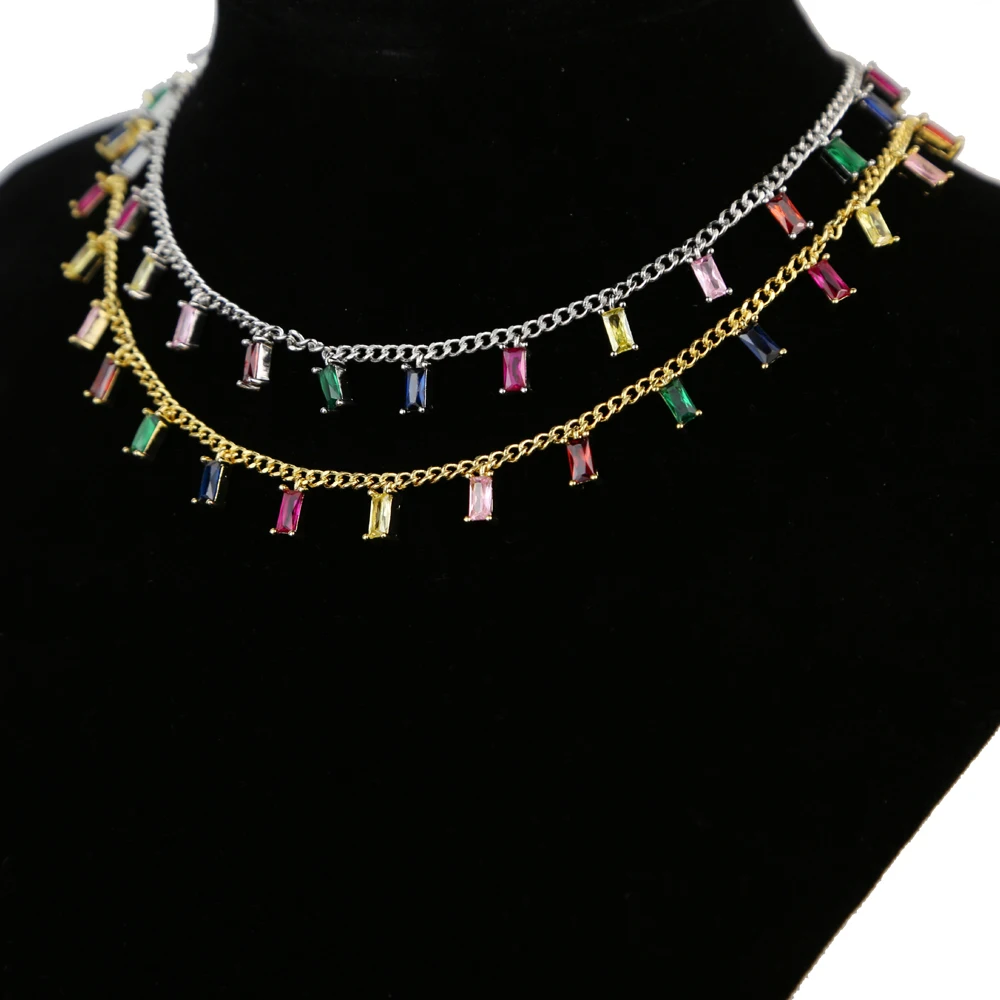 Радуга Багет cz очаровательные колье-чокер цвета: золотистый, сереб...