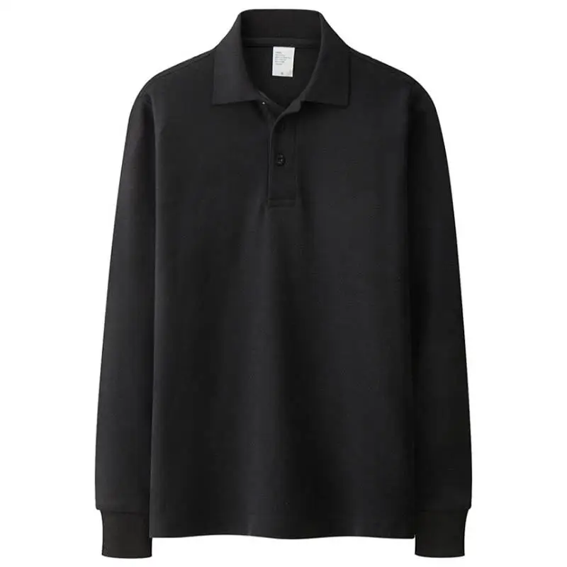 Мужская Осенняя рубашка-поло, однотонная, из 100% хлопка, с длинным рукавом, с отворотами, S-3XL