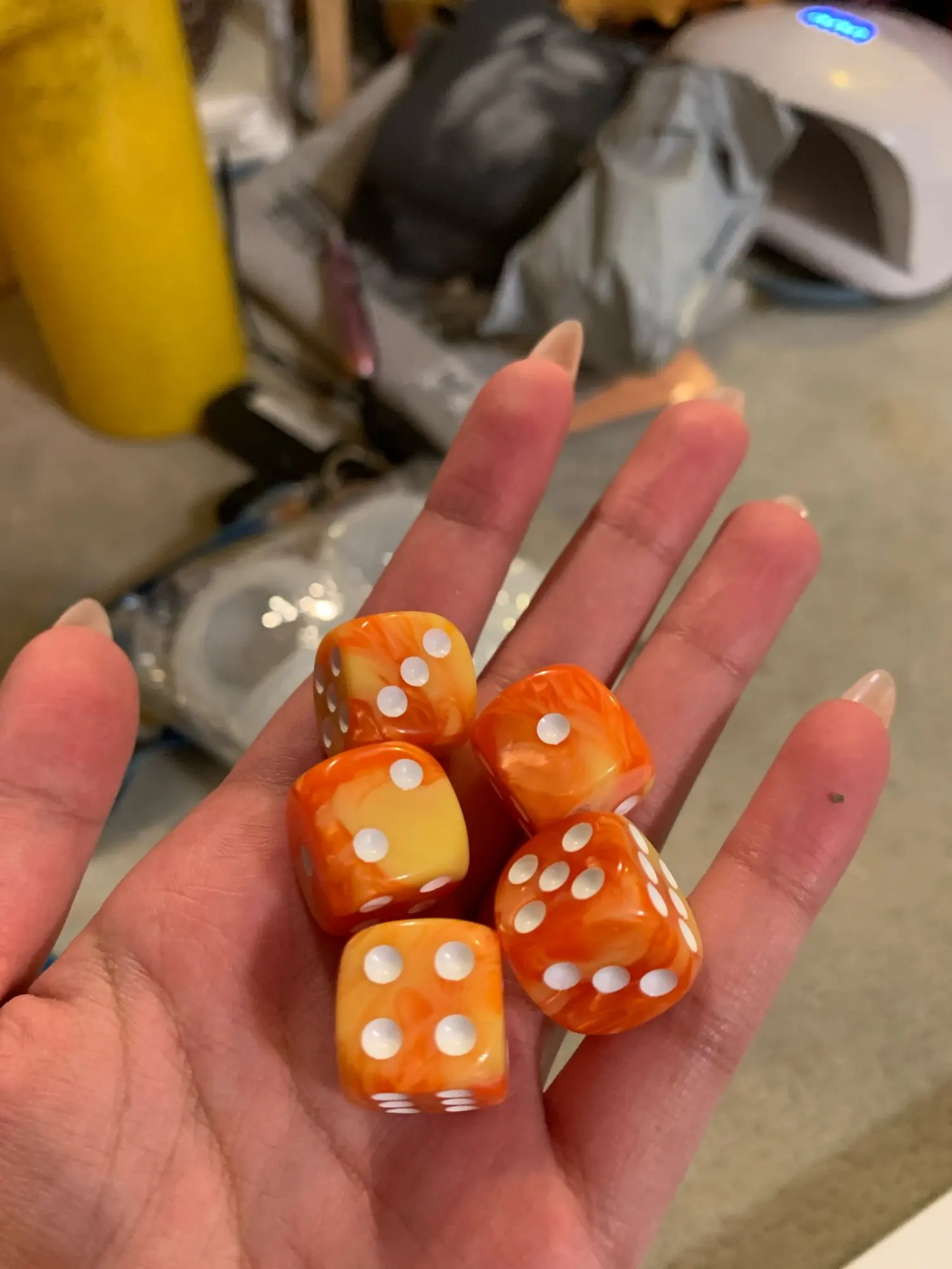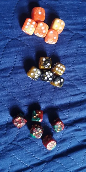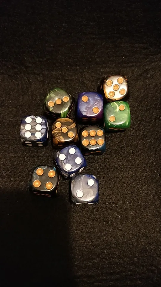 Попросил продавца положить в два разнонаборных 1х абсолютно разных кубика и он положил без каких либо вопросов, просто сказал "да, хорошо". Рекомендую к покупке, если хотите придать своей игре разнообразия от стаффа. Качество огонь, пластик не пахнет, краска на точках держится, цвета переливаются на свету. Очень яркие и крутые. Физика броска отличная за счёт веса.