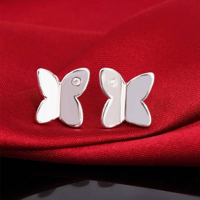 Серьги-гвоздики с маленькими бабочками из серебра 925 пробы для женщин, модные ювелирные изделия