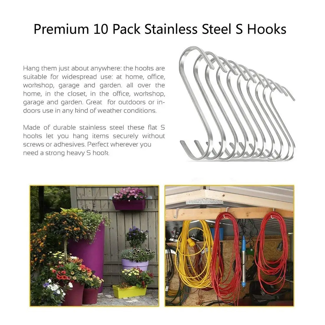 Набор из 10 подвесных крючков из нержавеющей стали для кухонной посуды или мяса мясника