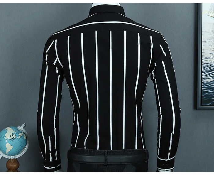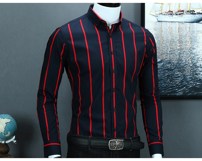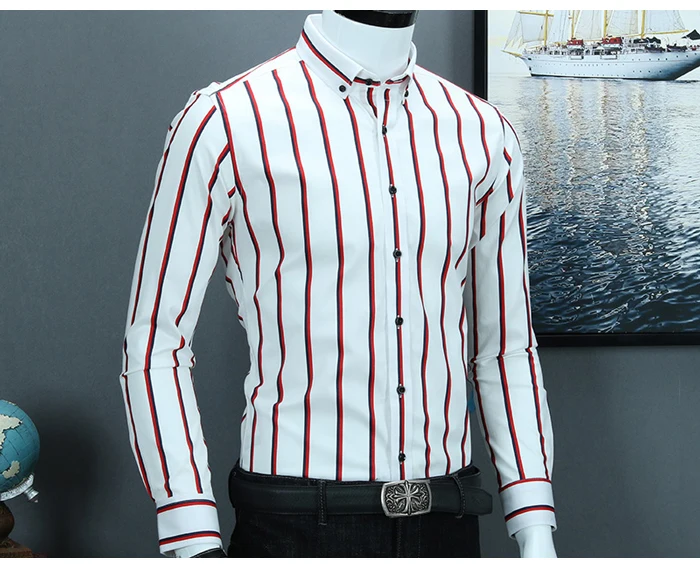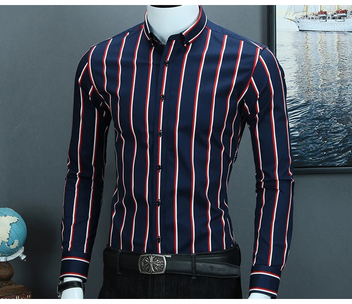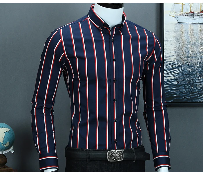 Мужская хлопковая рубашка в цветную полоску, повседневная классическая рубашка с длинными рукавами и воротником на пуговицах, Осень-зима 2019