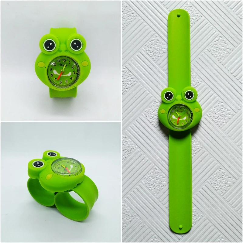 Часы Детские с рисунком лягушки, кварцевые наручные, для девочек и мальчиков, с резиновой вставкой, подарок для детей