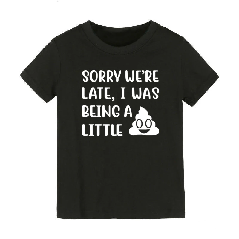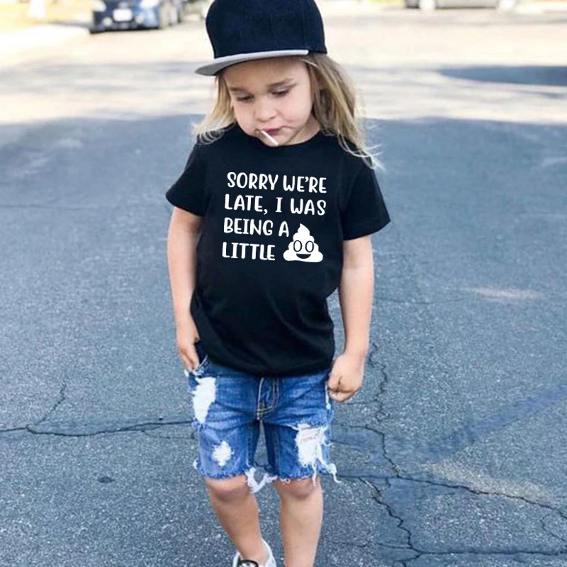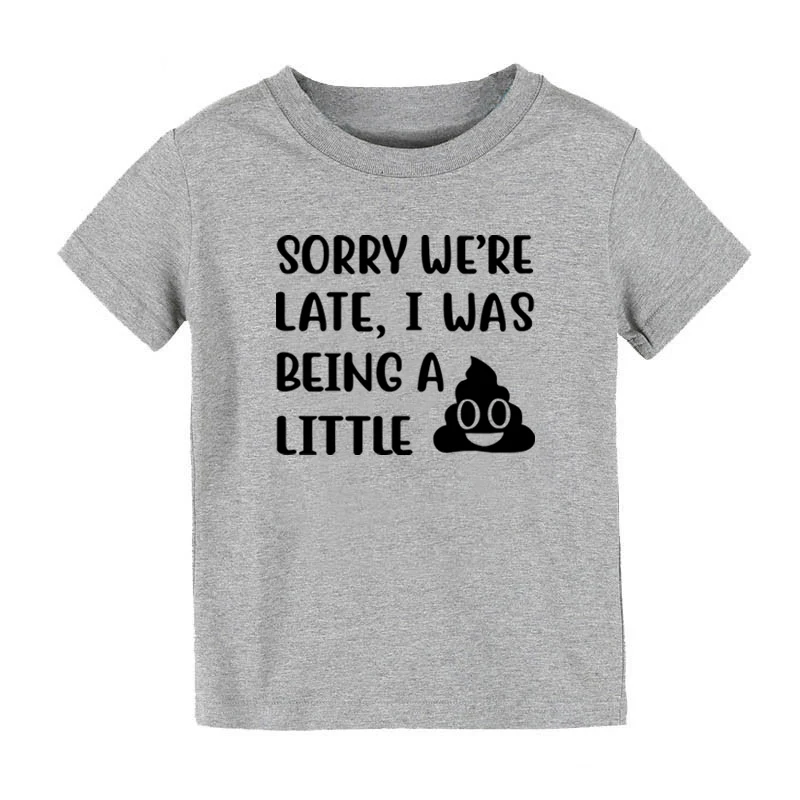 Извините, мы поздно, Забавная детская футболка, милая рубашка с надписью для маленьких мальчиков и девочек, Повседневная Блузка для малышей, футболки, топы, детские летние рубашки