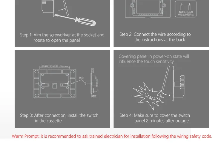 Смарт-выключатель настенный стеклянный с сенсорным экраном и поддер...