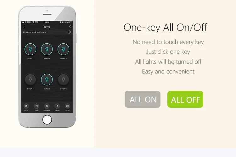 ХарактеристикиUK 8 Gang wifi switch support RF Remote control