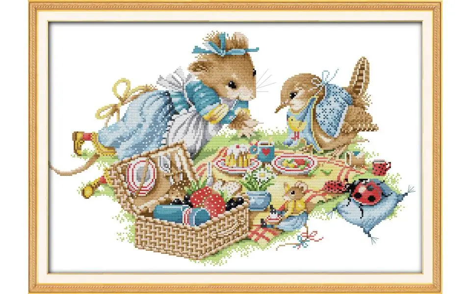 Набор для вышивки крестом на день рождения, мышь, птица, ужин, DMC 11CT 14CT
