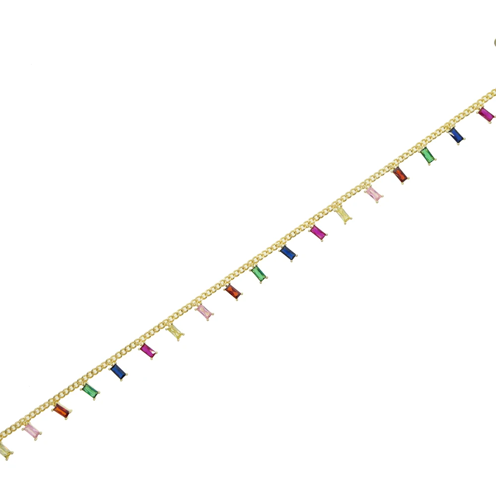 Цепочка с кубическим цирконием женская, очаровательное модное ожерелье ручной работы с разноцветной радужной багеткой, цвет золотосеребро, Ювелирное Украшение для вечеринки