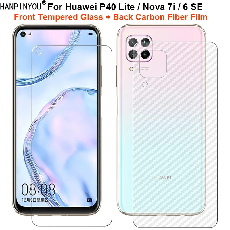 Для Huawei P40 Lite Nova 7i 6 SE 6,4 дюйма 1 комплект = мягкая задняя пленка из углеродного волокна + ультратонкое закаленное стекло для переднего экрана