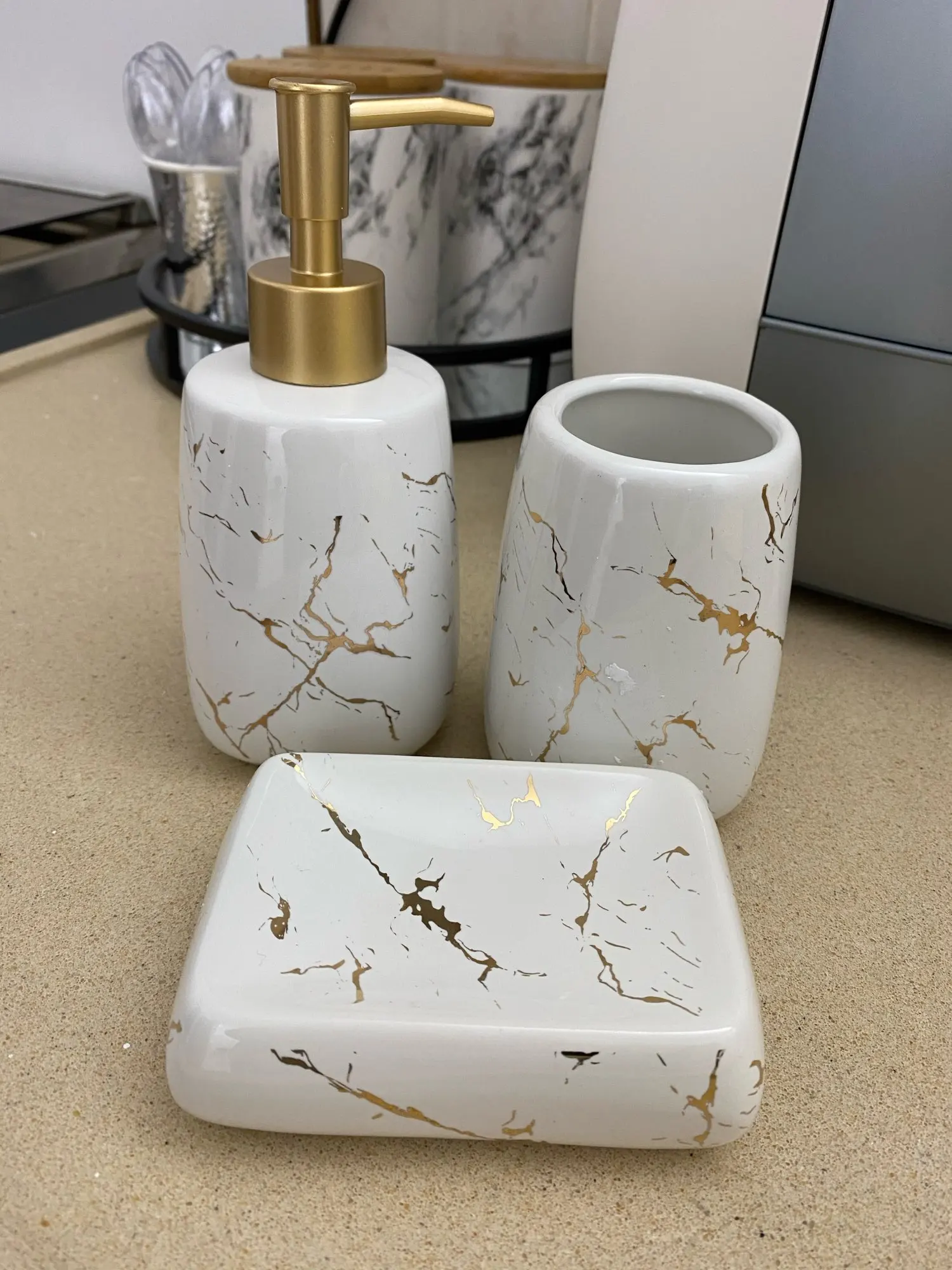 Лоток для аксессуаров для ванной комнаты с мраморной текстурой, керамический набор для ванной комнаты, дезинфицирующее средство для рук, лосьон, набор аксессуаров для ванной комнаты, дозатор мыла, зуб