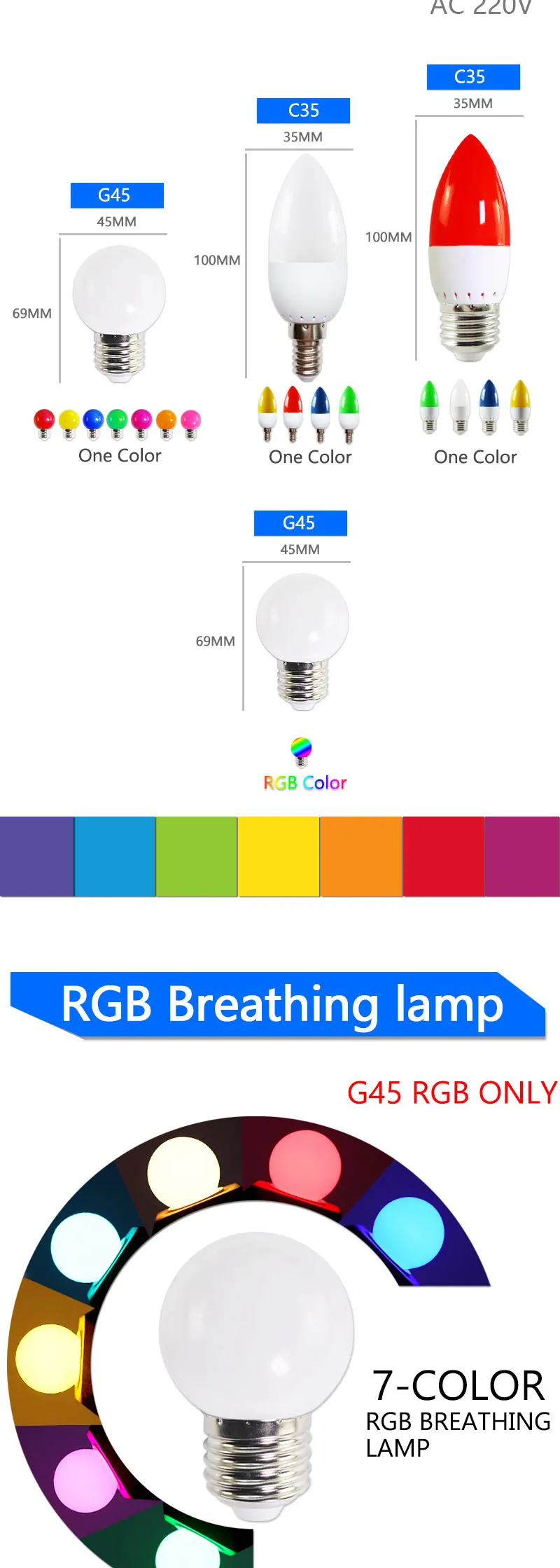 Светодиодный лампы E27 E14 3 Вт G45 C35 RGB светодиодный Свеча светильник светодиодный светильник Красочные SMD 2835 переменного тока 220V 240V флэш-светильник Глобус лампы домашний декор для ч