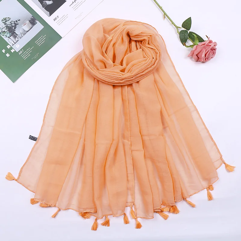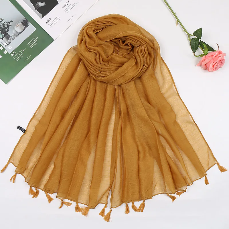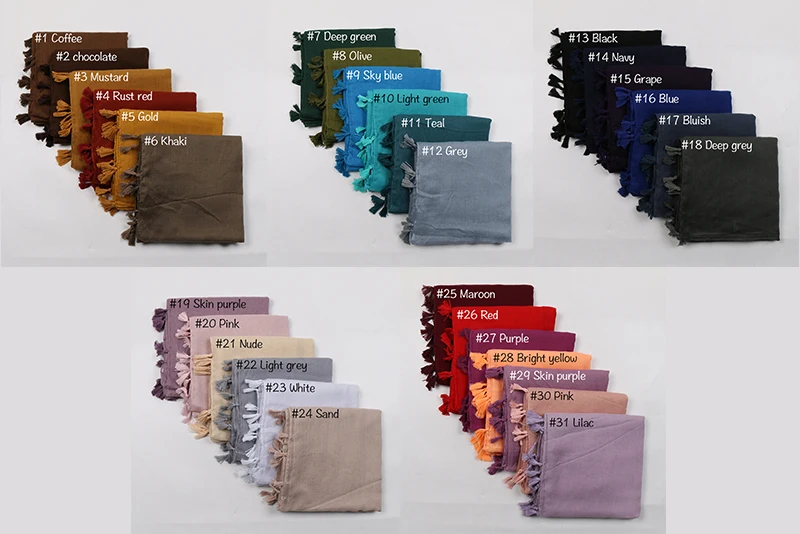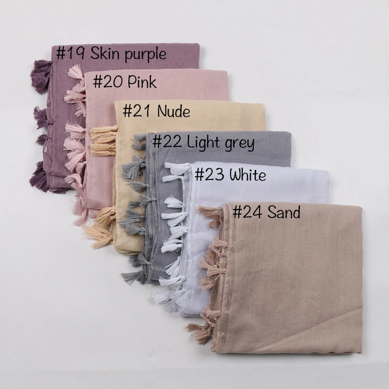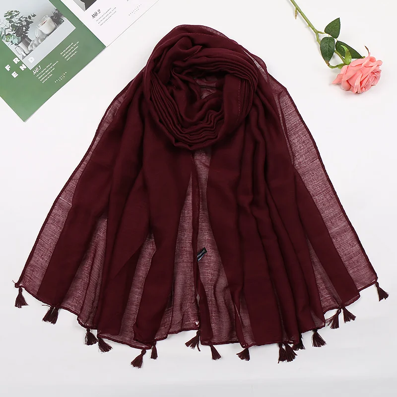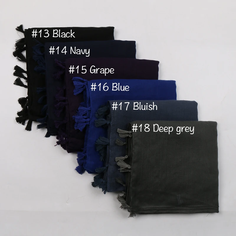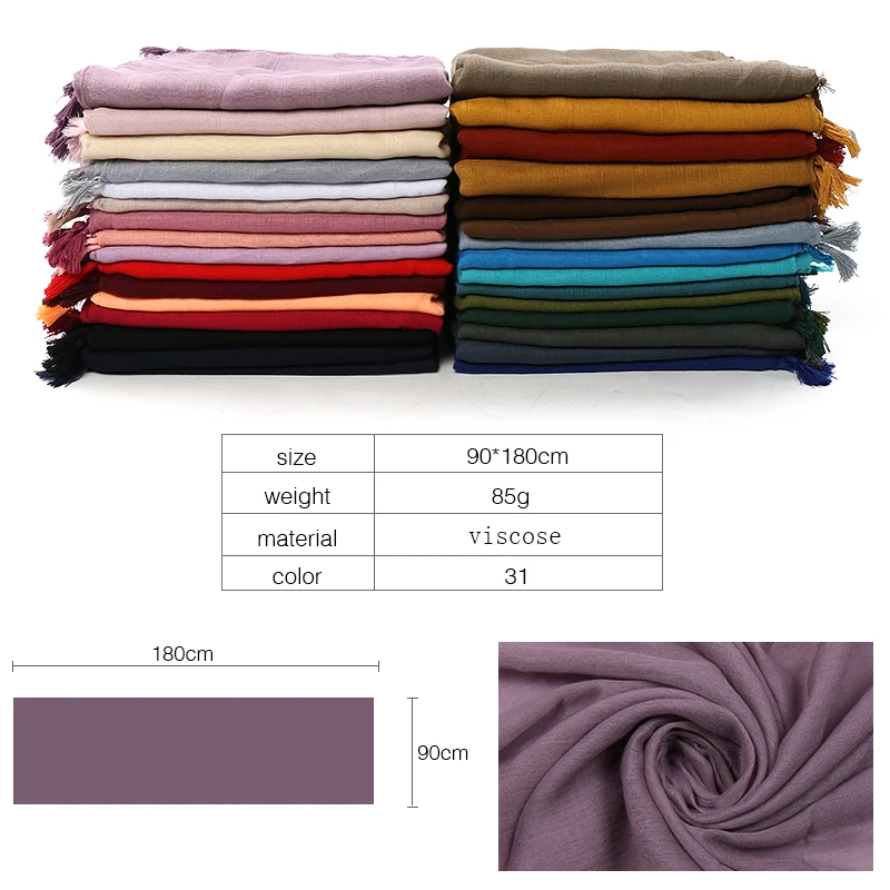 Женская хиджаб с бахромой шаль, простые Макси-шарф, модные шали с подвесками, женские мусульманские хиджабы, шарфы, мягкий фуляр, 1 шт., 31 цвет
