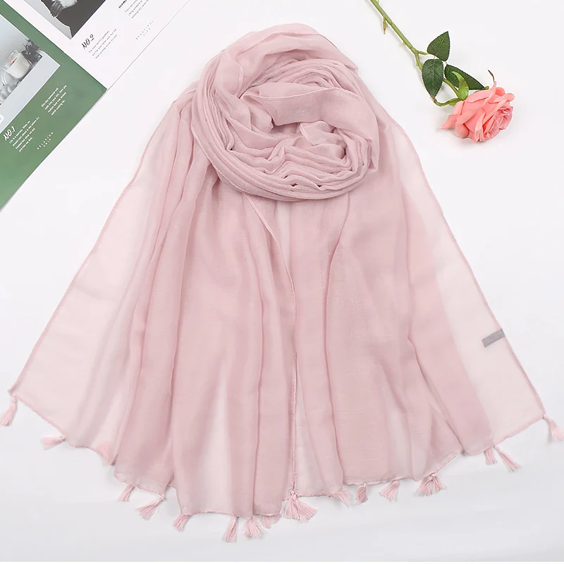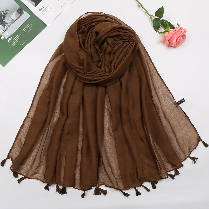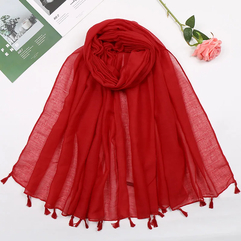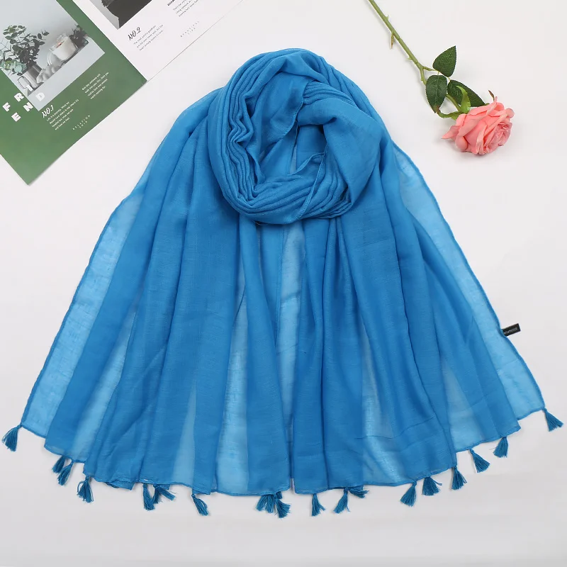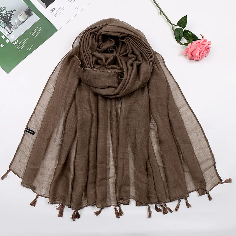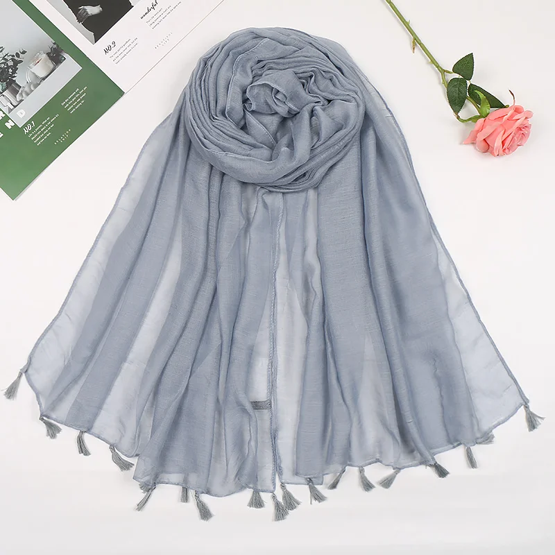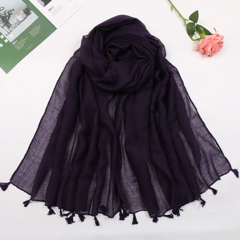 Женская хиджаб с бахромой шаль, простые Макси-шарф, модные шали с подвесками, женские мусульманские хиджабы, шарфы, мягкий фуляр, 1 шт., 31 цвет