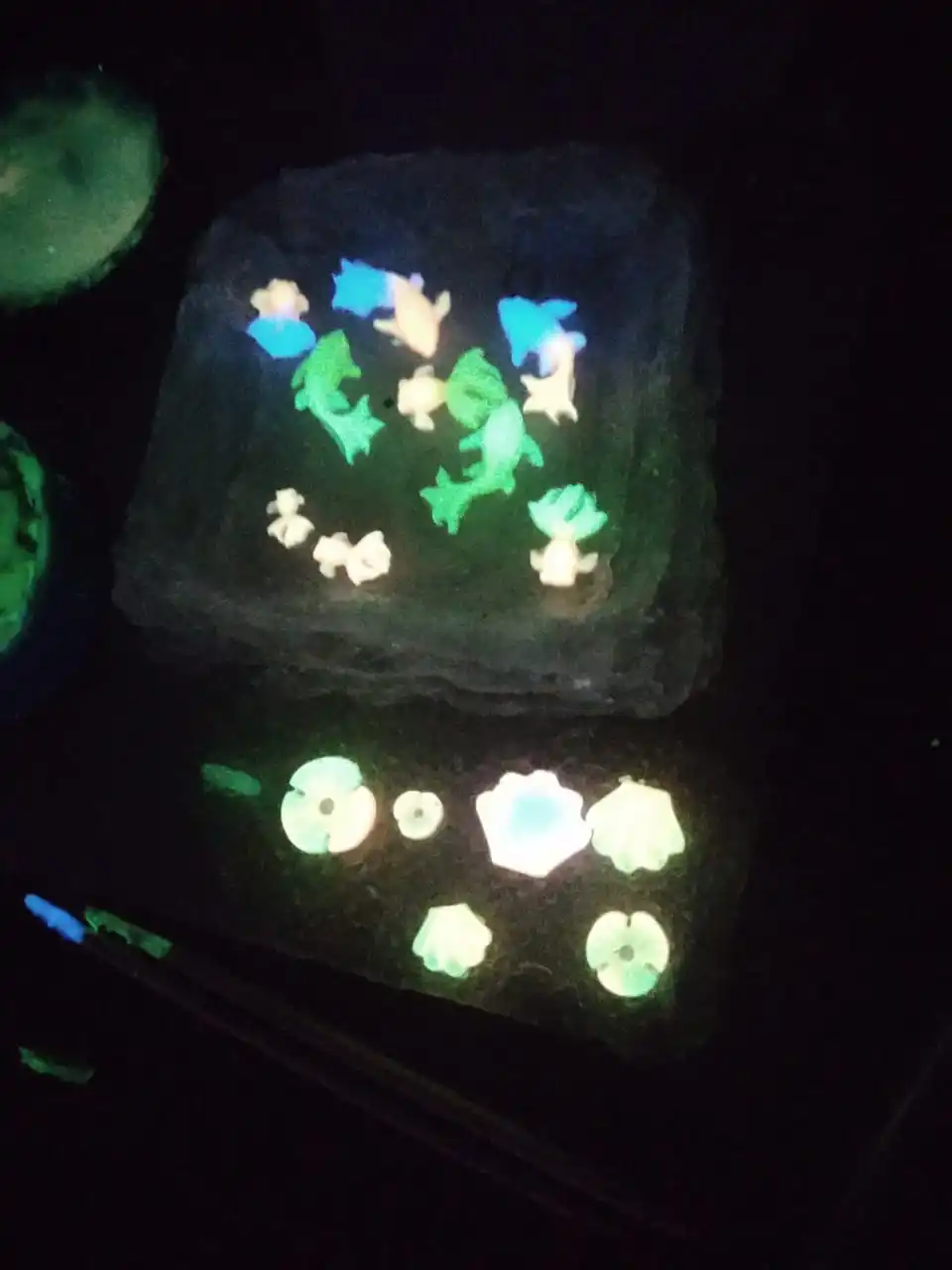 Супер! Они маленькие и, как сказала подруга, миленькие. Так понимаю, по назначению они должны использоваться для изготовления украшения для ногтей, но если уж начал работать с эпоксидкой - остановиться было невозможно. Главное, не переливать, иначе вместо рыбок получаются кляксы. Спасибо за возможность создать ГМО-аквариум со светящимися рыбками!