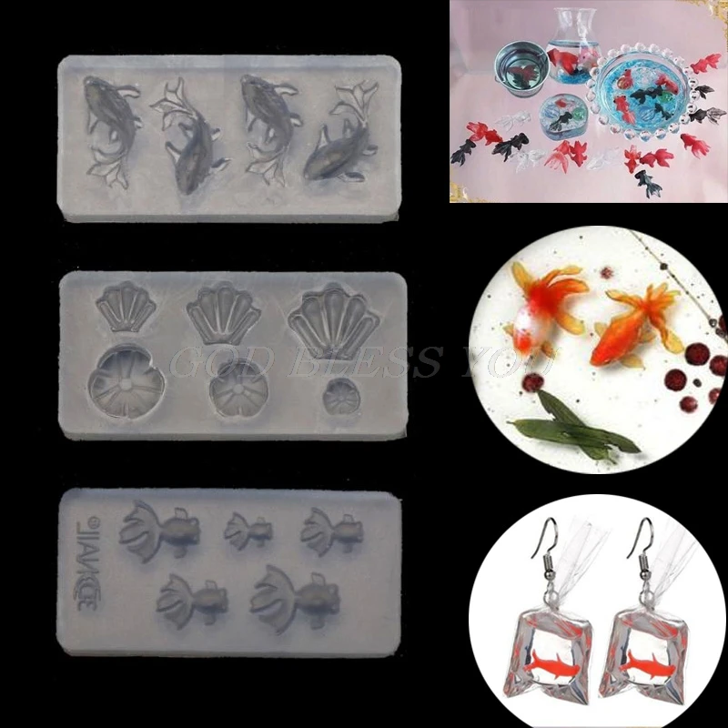 3 шт. Мини Размер Золотая рыбка лист лотоса серьги водный Каг DIY Смола ювелирные изделия Плесень Комплект Кристалл эпоксидная форма DIY Изготовление ювелирных изделий новый