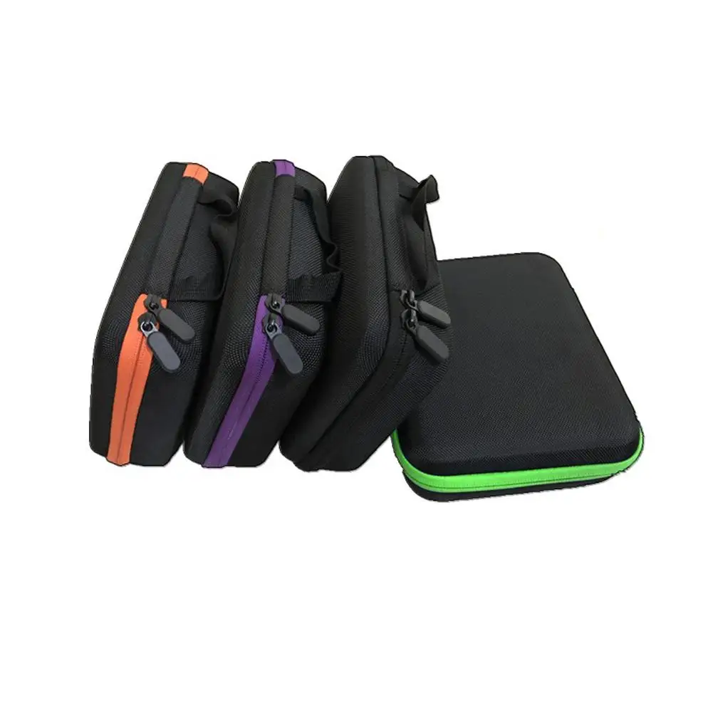 Это сумка для хранения эфирных масел с 63 отсеками для 63 бутылок эфирного масла и с ручкой сверху для удобной переноски. Он изготовлен из высококачественного материала EVA, достаточно прочный, чтобы обеспечить наилучшую защиту вашего эфирного масла и защитить ваше эфирное масло от солнца или температуры окружающей среды.