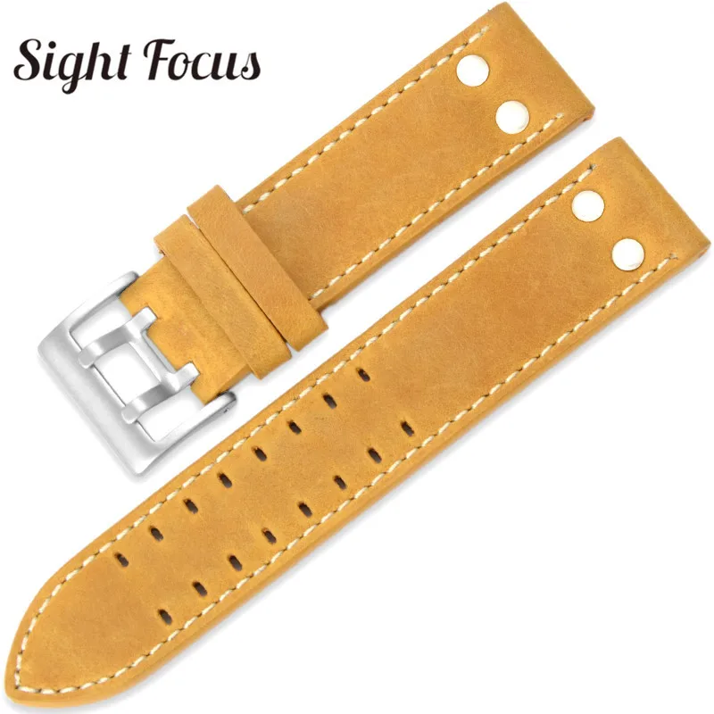 Ремешок из телячьей кожи 20 мм 22 мм для наручных часов Гамильтон Классик Джаз Сейко ремешок с заклепками военный пилот хаки GMT полевой авиационный ремешок для часов