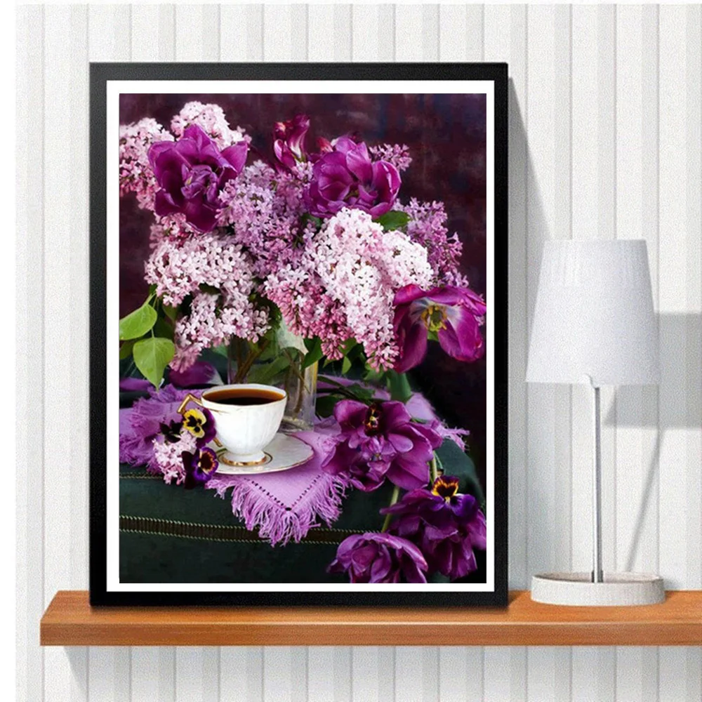 HUACAN DIY Алмазная вышивка цветок с домашним украшением вышивка крестом фиолетовая сиреневая Алмазная мозаика