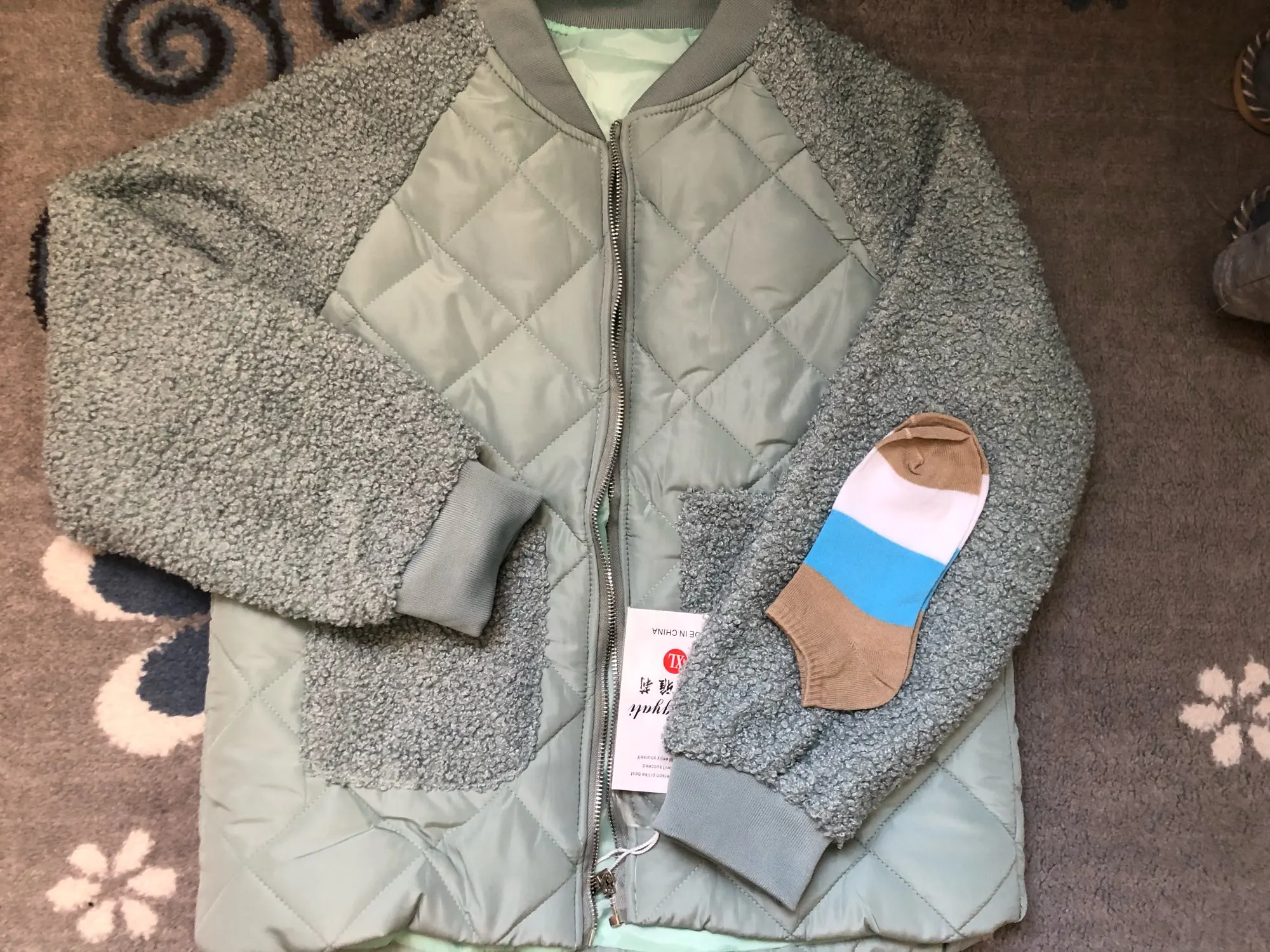 Спасибо. Быстрая доставка + курье принес прямо домой ,, Хорошая легкая курточка!!, Конечно хотелось бы на ладонь чтобы была ниже!!, Но что маем то маем!,!! Пишут что ткань не та что заявлена!! Так читайте внимательно описание или характеристики!!!, Указано — ПОЛИЭСТЕР!!,! На о груди 114 см О бедер 118 см — села только только !!, Но я довольна !! Это не не куртка на осень !,! Это легкая кофта ветровка до морозов!,!! Покупкой довольна. Еще раз спасибо!,!,!! Спасибо да подарочек - было приятно!,!,