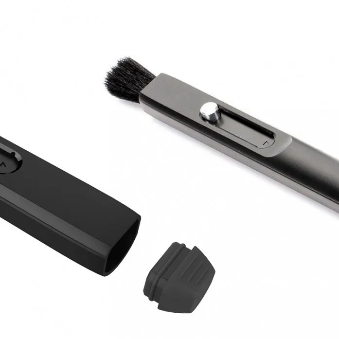 Тонкая и мягкая щетка отлично подходит для очистки в труднодоступных местах, например, в промежутках вокруг линз и ободков фильтров. Нежные волоски гибнут и имеют способность достигать тех мест, где ткань или протирать не могут, или не должны, рисковать. Защитный колпачок защищает щетку для следующего использования.