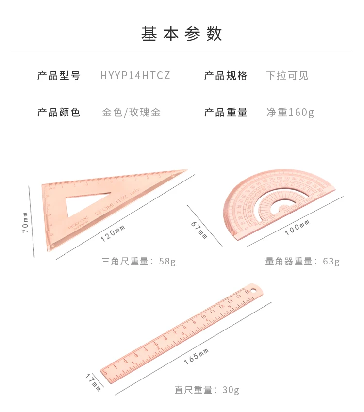 Линейка-пачка из нержавеющей стали золотогорозового золота, треугольная линейка-транспортир, многофункциональные поворотные измерительные инструменты H0435