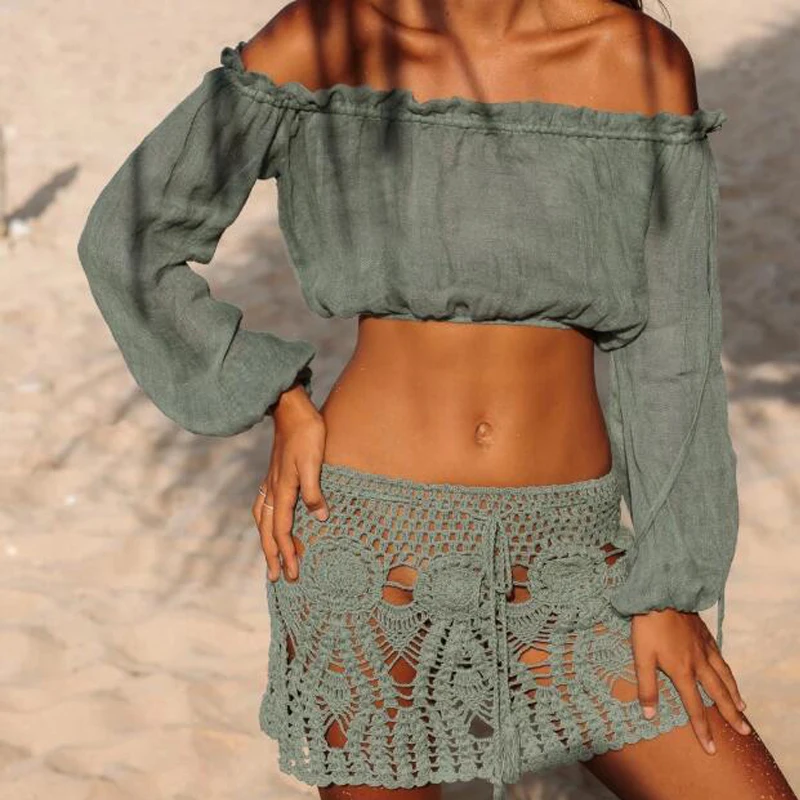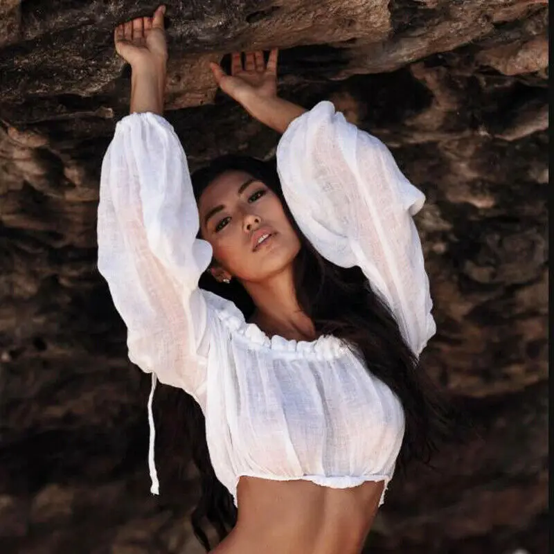 2020 Женская Сексуальная накидка на бикини, пляжные топы, однотонный купальник, Пляжная блузка с открытыми плечами, рубашка, топ, накидки