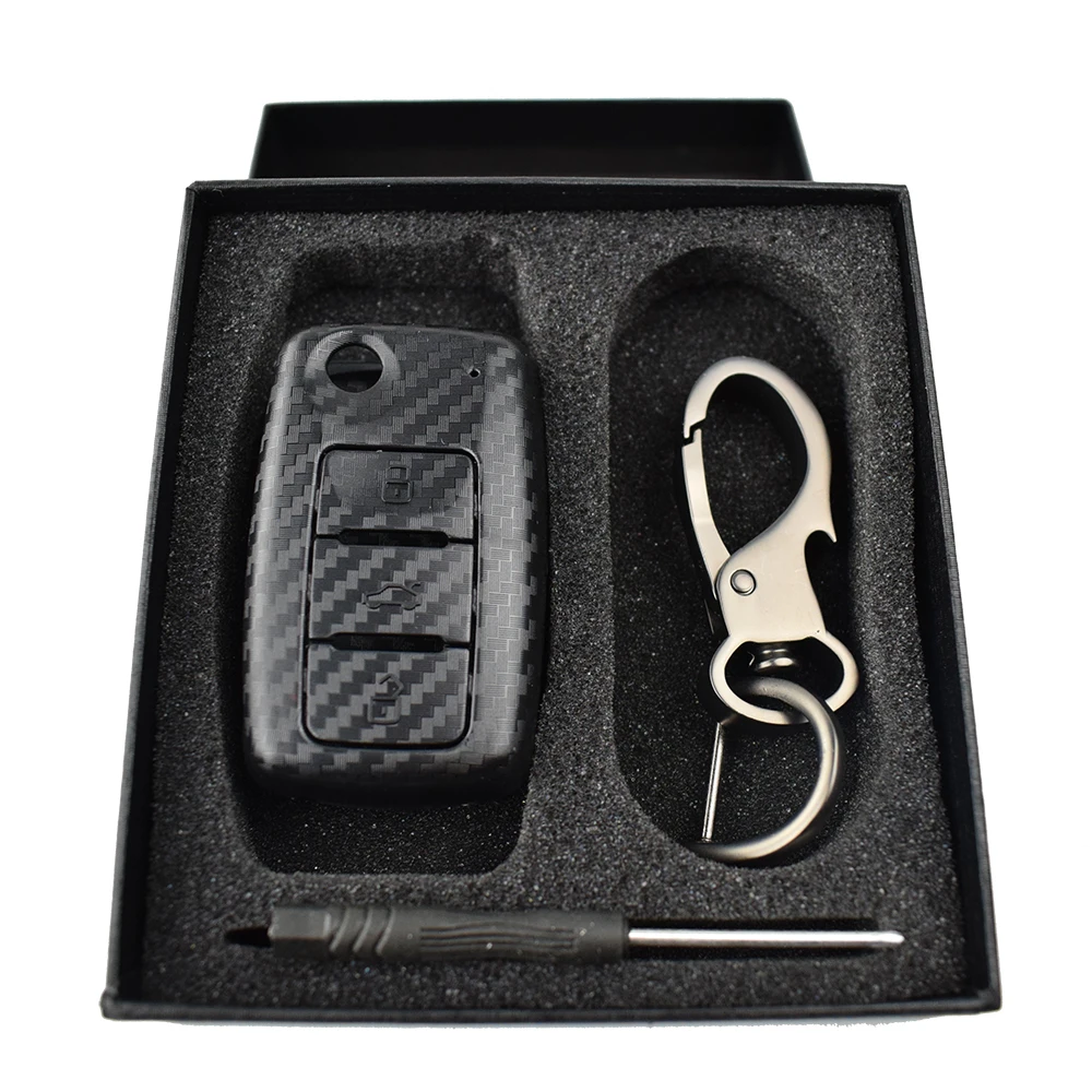 Carbon Fiber Style Remote Key Fob Shell Case For Seat Leon Toledo Altea Ibiza Mii Keyring Keychain 3 Buttons